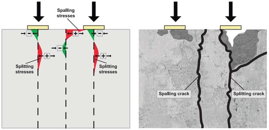Splitting and spalling stresses in a concrete block (adapted from Conforti et al. []).