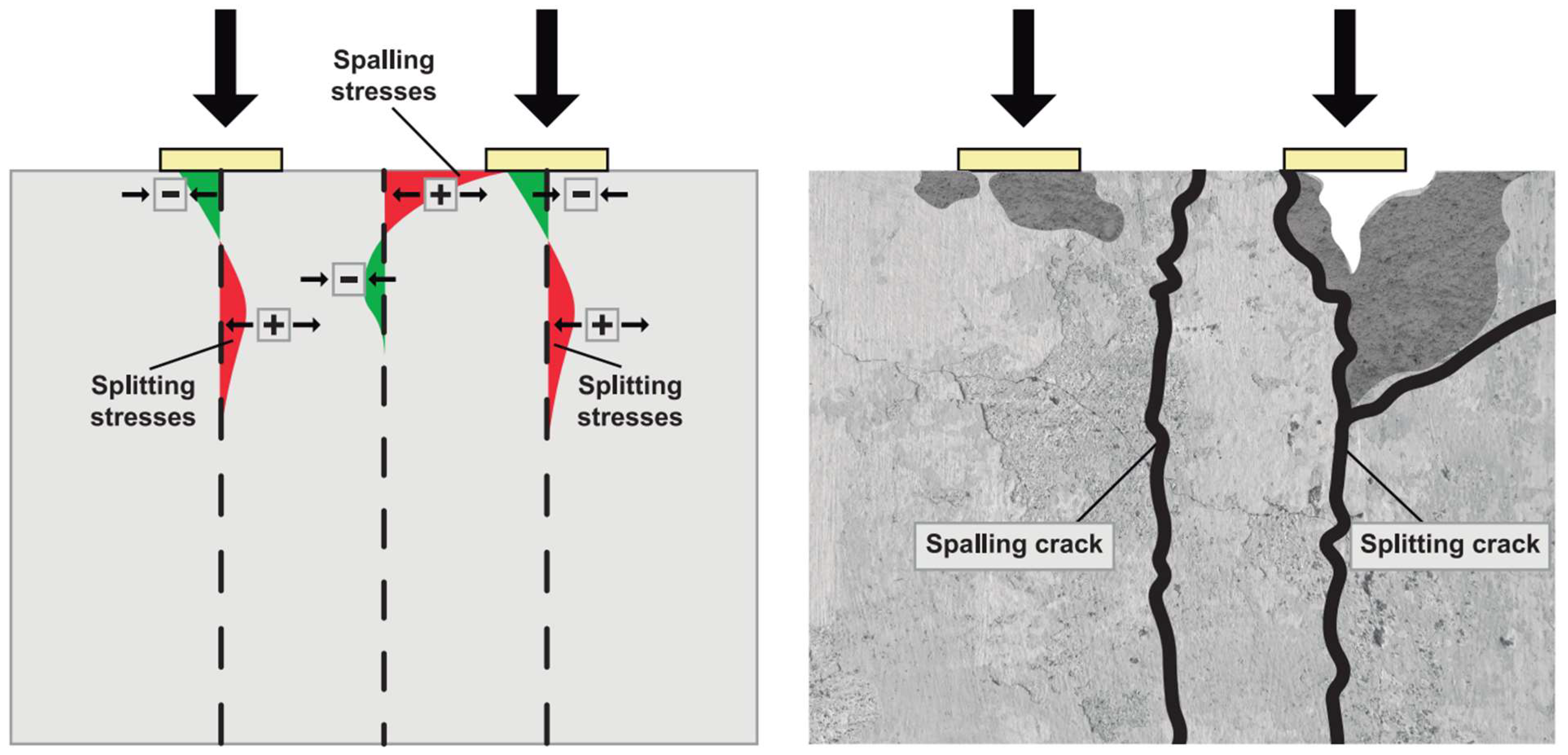 Figure 1. Splitting and spalling stresses in a concrete block (adapted from Conforti et al. [7]).