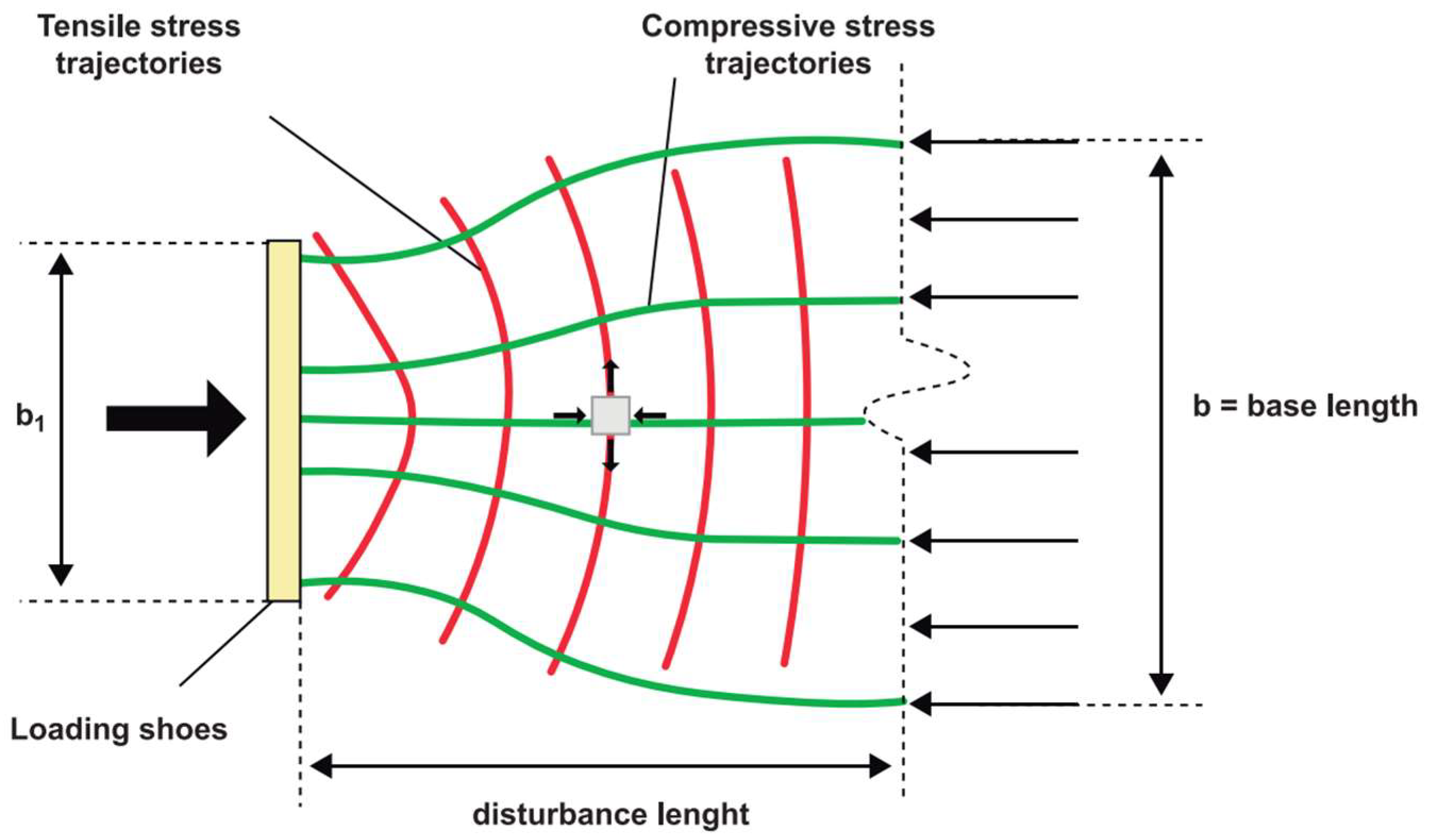 Figure 2. Stress state in the “D region” under the loading shoe.