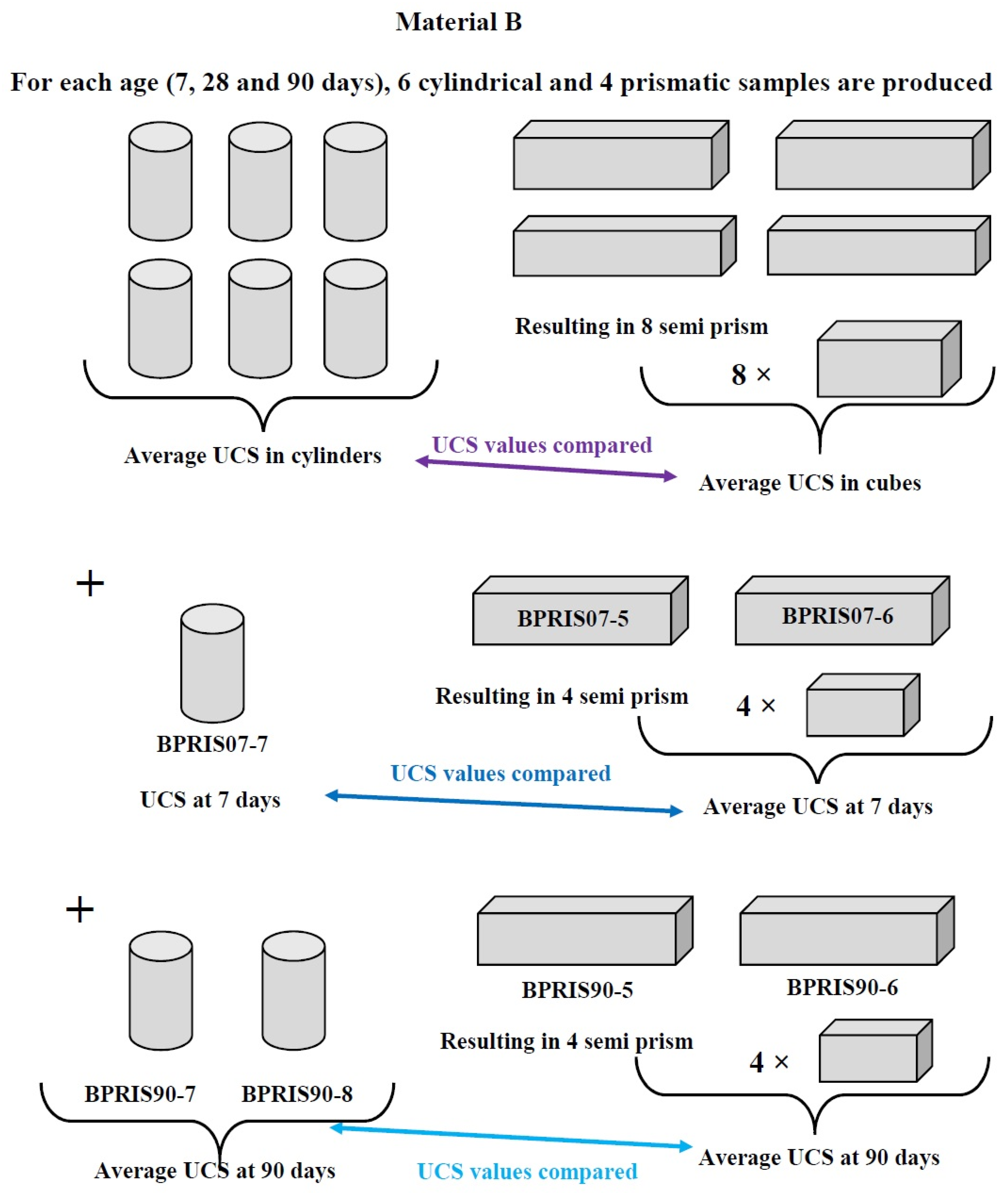 Table 6 exposes the UCS values of cubic samples obtained from the semi-prismatic parts at 7 and 90 days, including the density of the prismatic sample.