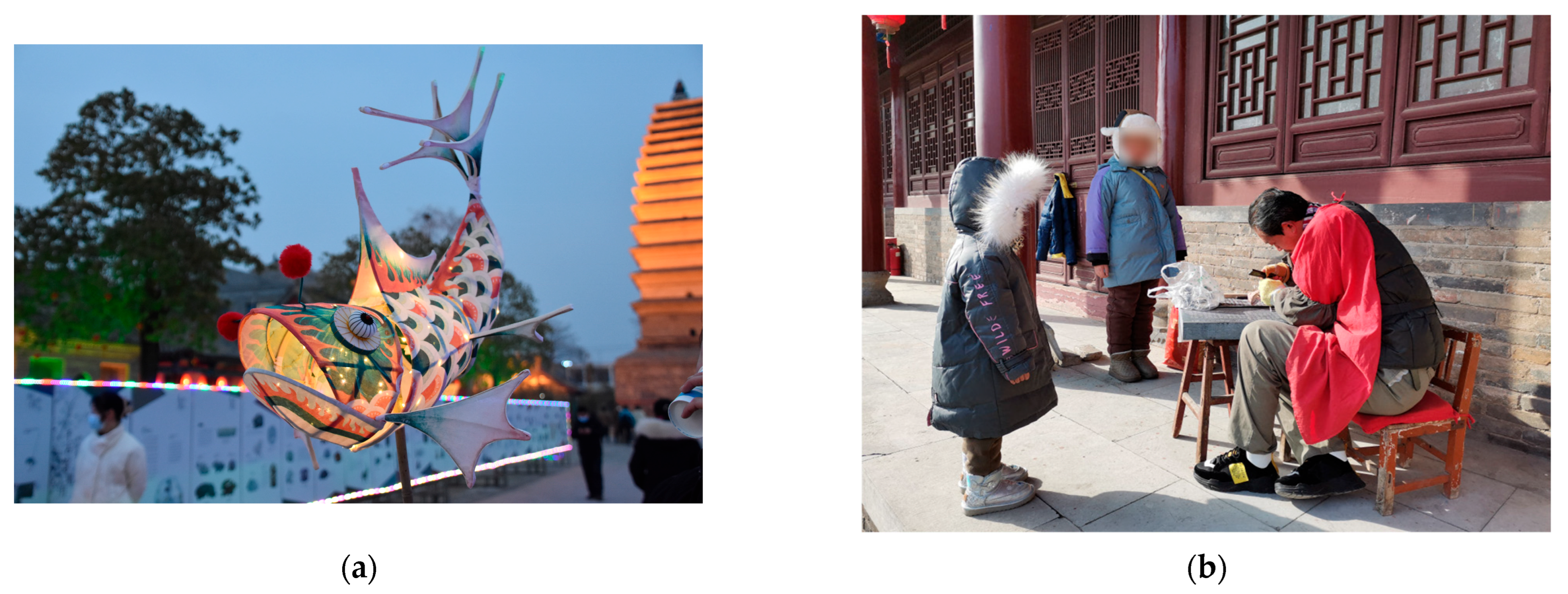 These materials generated several contextually meaningful insights. Policy documents highlighted the central position of the Sansheng Pagoda within the local cultural-resource system and reflected recent governmental priorities regarding public culture, heritage protection, and city-image building. WeChat posts revealed a strong reliance on festival cycles for public activities, relatively slow rhythms of exhibition updates, and the continual symbolic reinforcement of the Sansheng Pagoda. Media texts showed a pronounced tendency toward historical storytelling and cultural promotion. In addition, field observations revealed salient patterns of everyday spatial use, such as the prevalence of parent–child groups, the popularity of leisure activities such as fish-feeding and viewing stone carvings, and the frequent evocation of family and local memories around the Sansheng Pagoda.