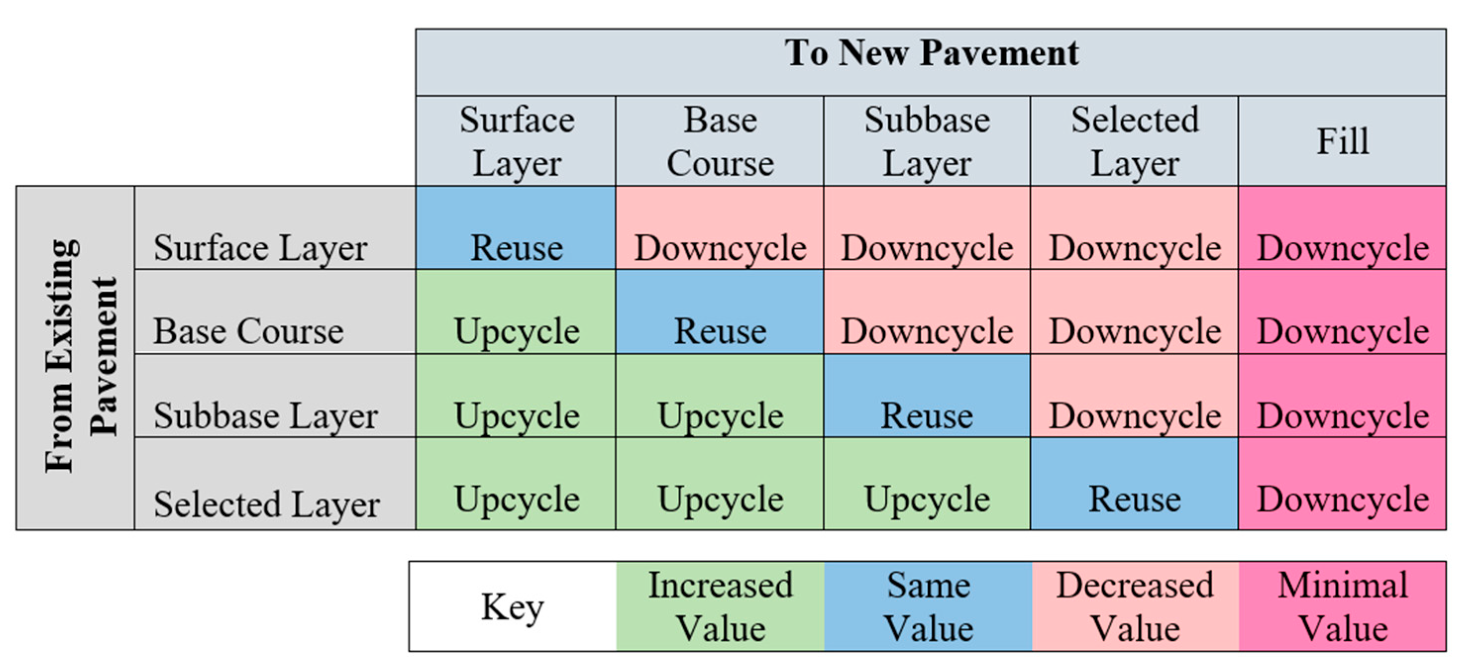 | P15 | The reclaimed base layer can be downcycled and utilised in the new Pavement | 0 | 1 | 5 | 13 | 13 | 32 | 4.19 | 0.82 |