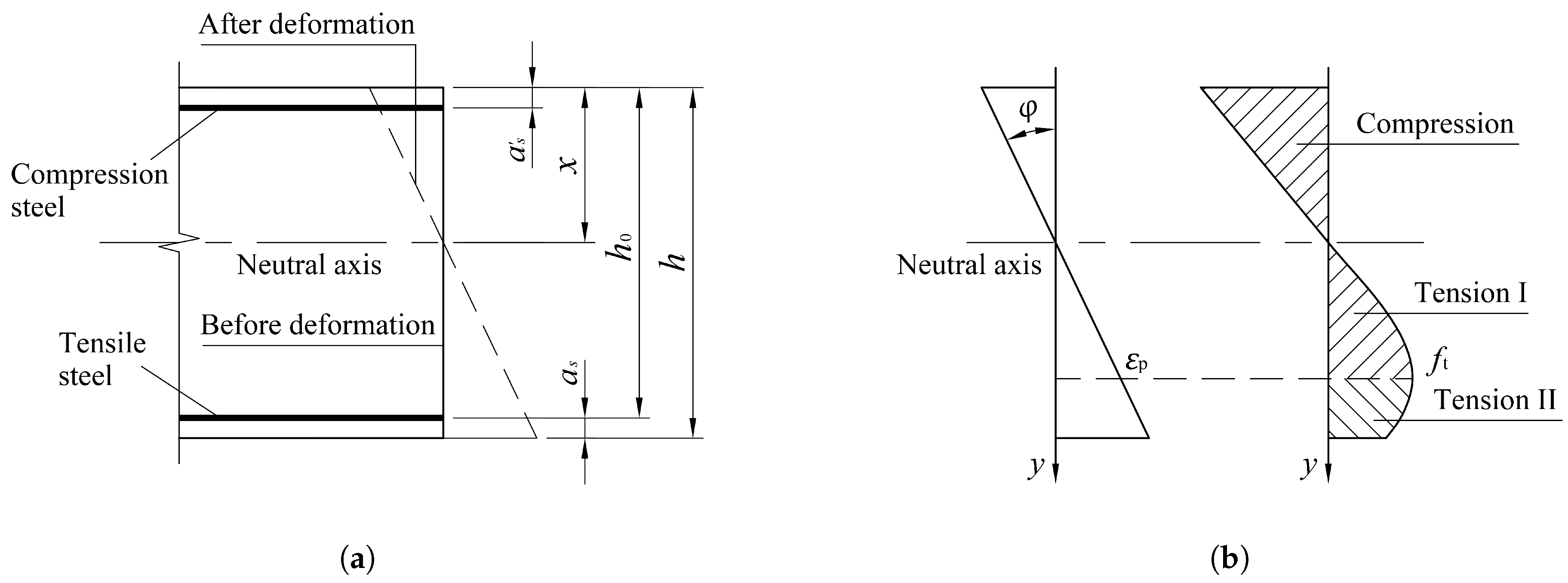 - Fang, S.; Zhang, P. An improved formula for cracking moment calculation of RC beams considering the development coefficient of plastic deformations. Chin. J. Comput. Mech. 2019, 36, 464–470. [Google Scholar]