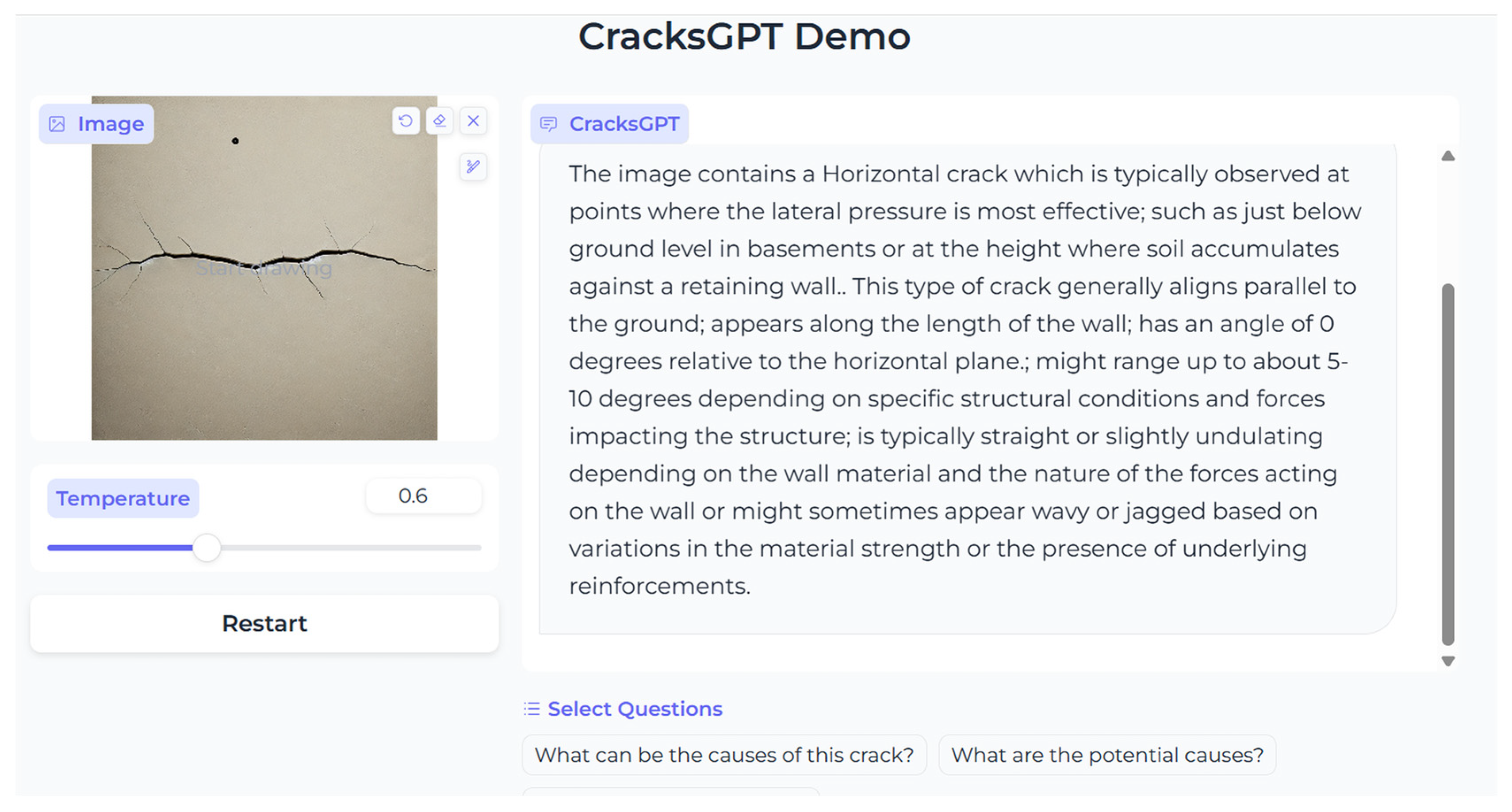 APA StyleEkanayake, B., Thengane, V., Wong, J. K.-W., Wilkinson, S., & Ling, S. H. (2025). CracksGPT: Exploring the Potential and Limitations of Multimodal AI for Building Crack Analysis. Buildings, 15(23), 4327. https://doi.org/10.3390/buildings15234327