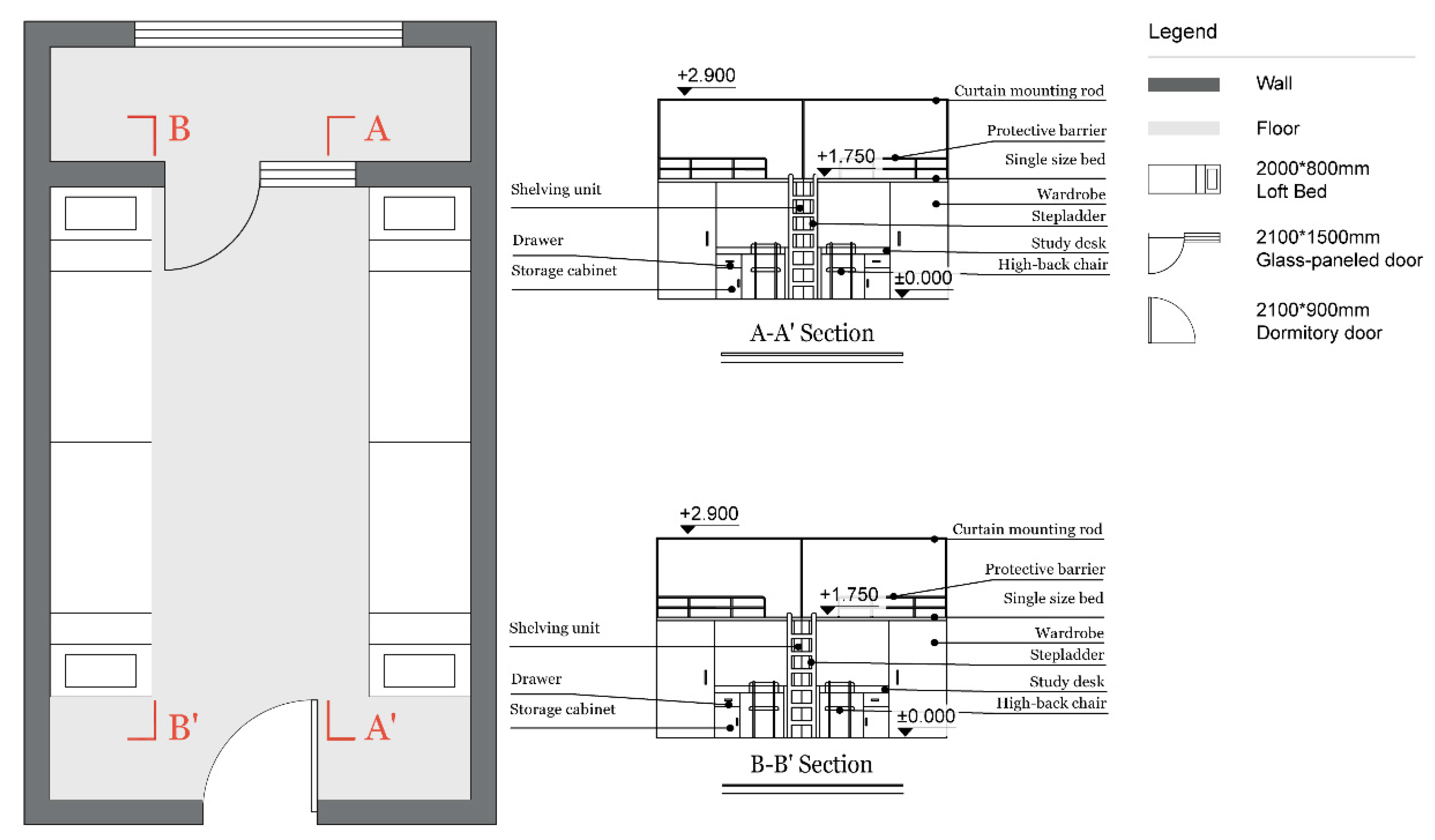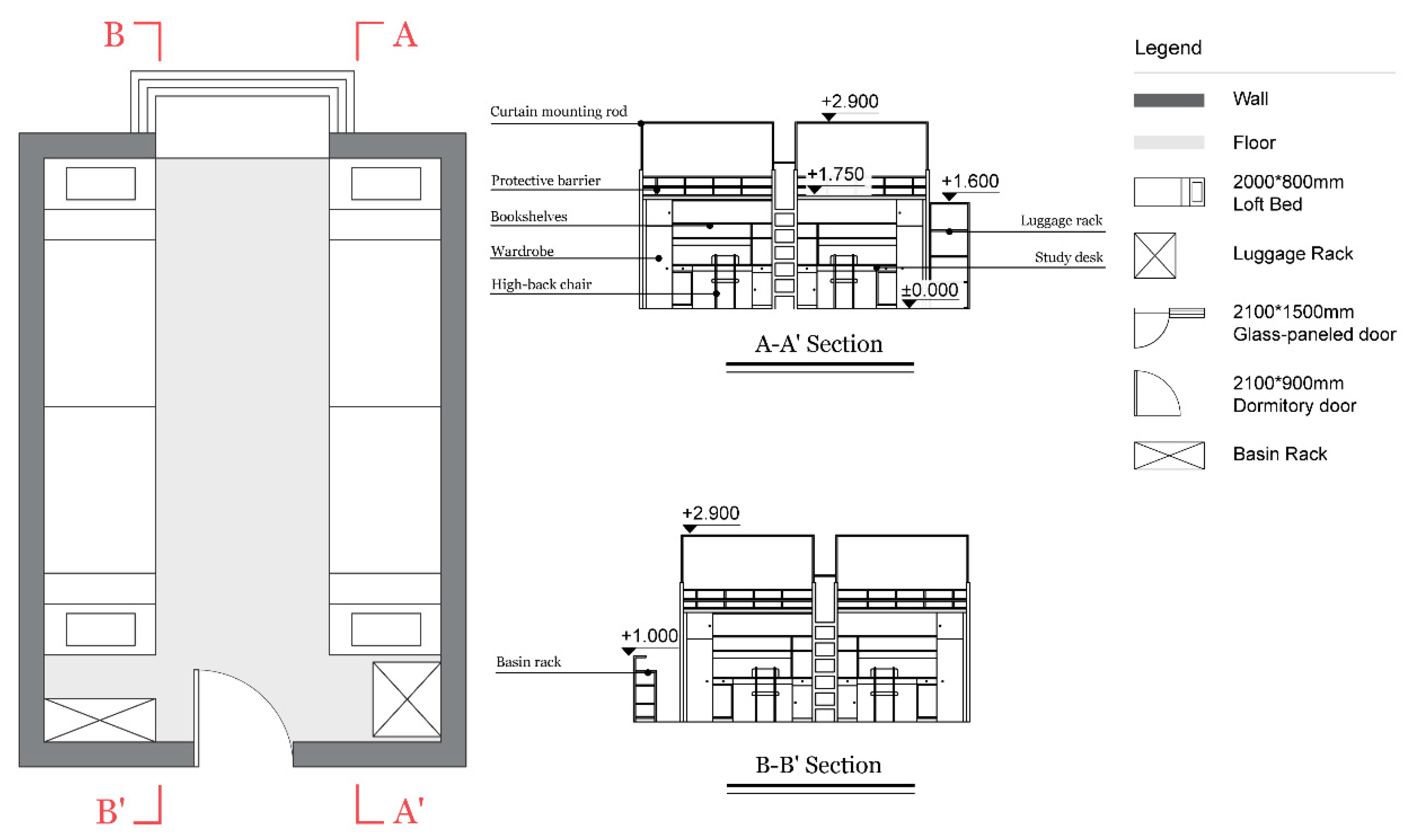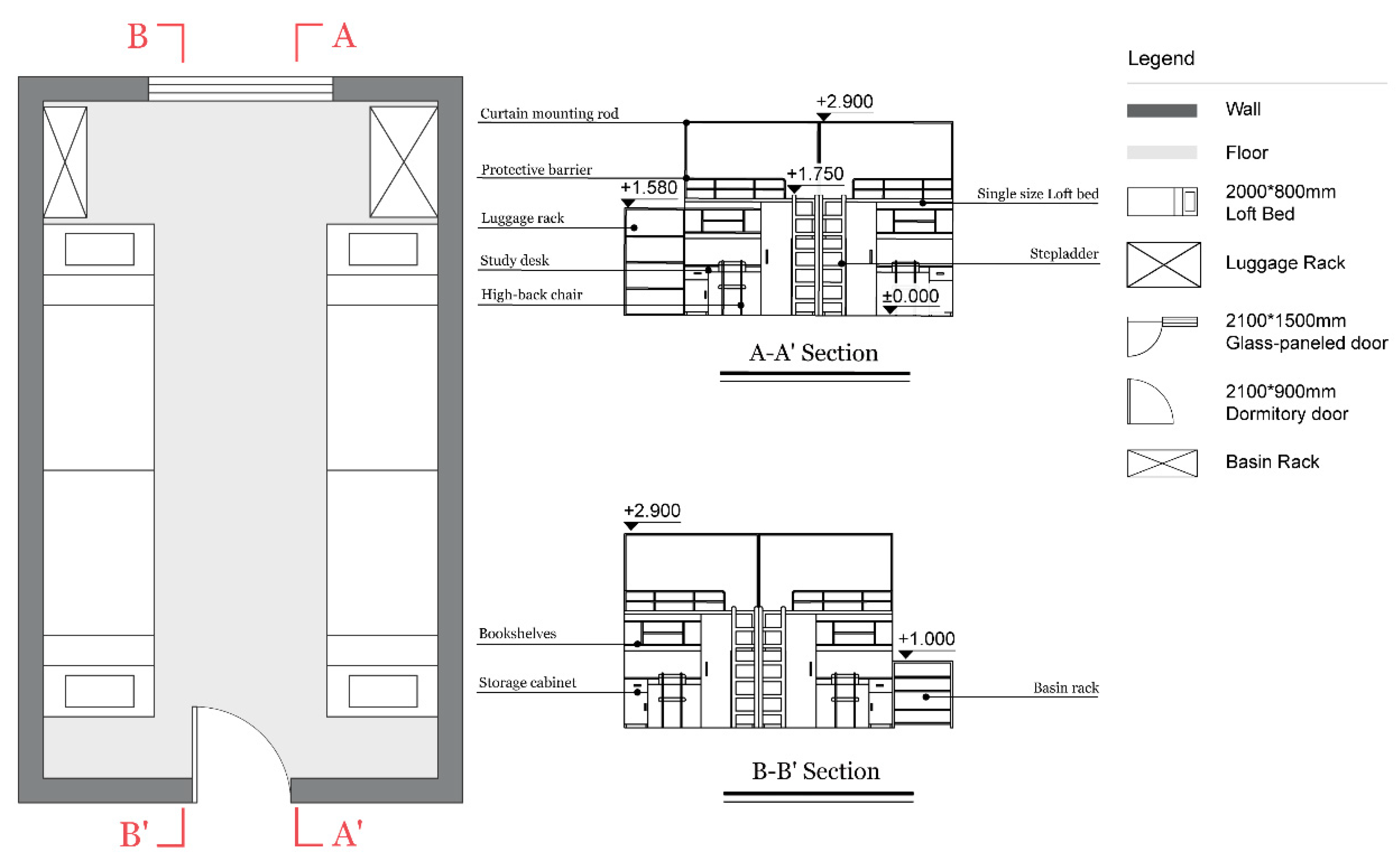 | D-03 | 14.55 m2 | 3 | Mixed Bunk and Loft Beds | Personal and Shared Storage | Private | Enclosed Balcony |