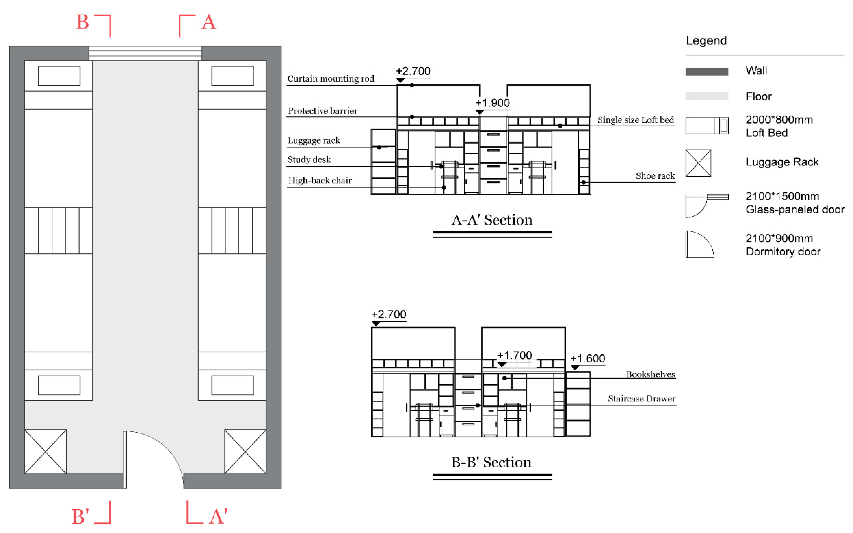 | D-01 | 15.84 m2 | 4 | Loft Bed with Desk | Personal Locker | Shared | Enclosed Balcony |