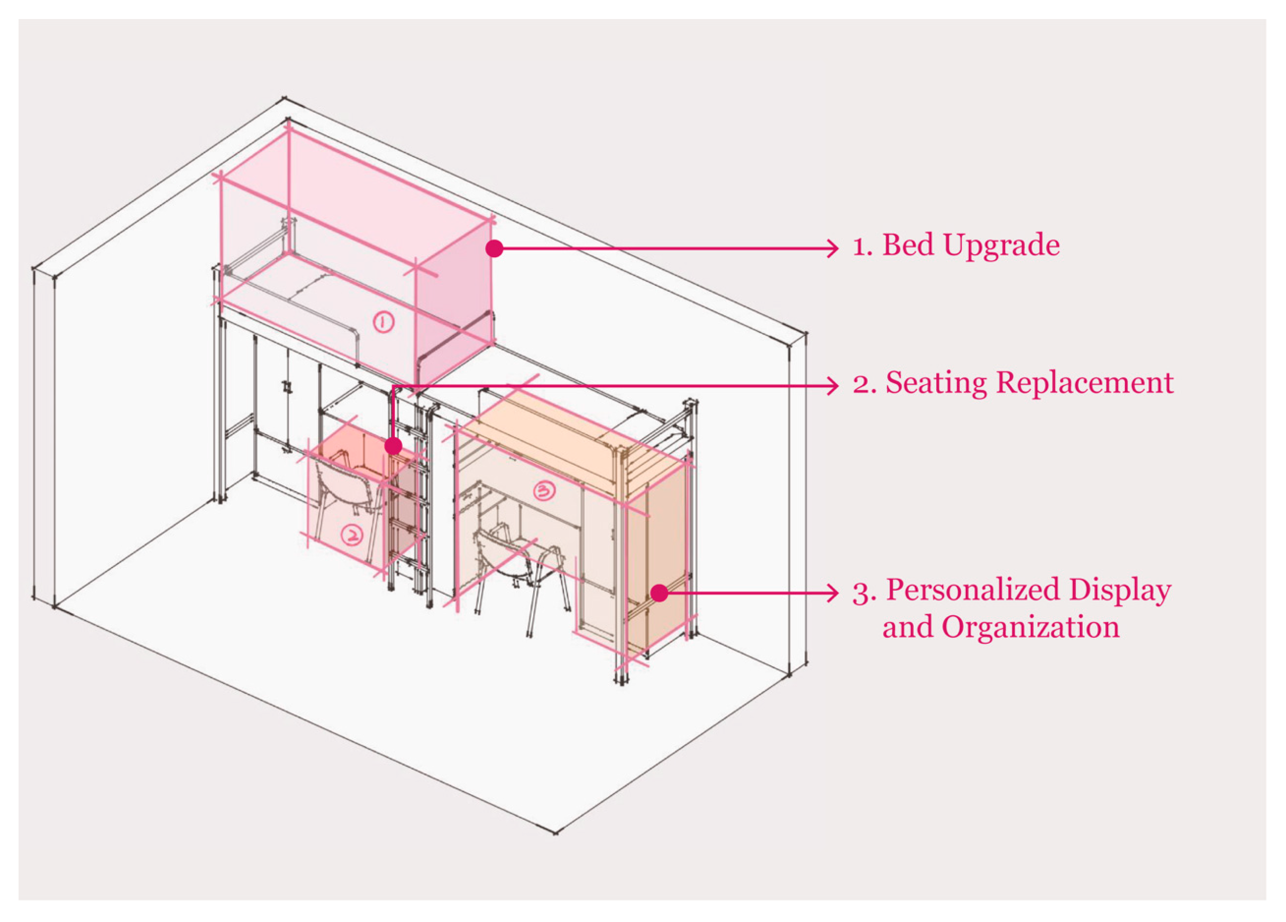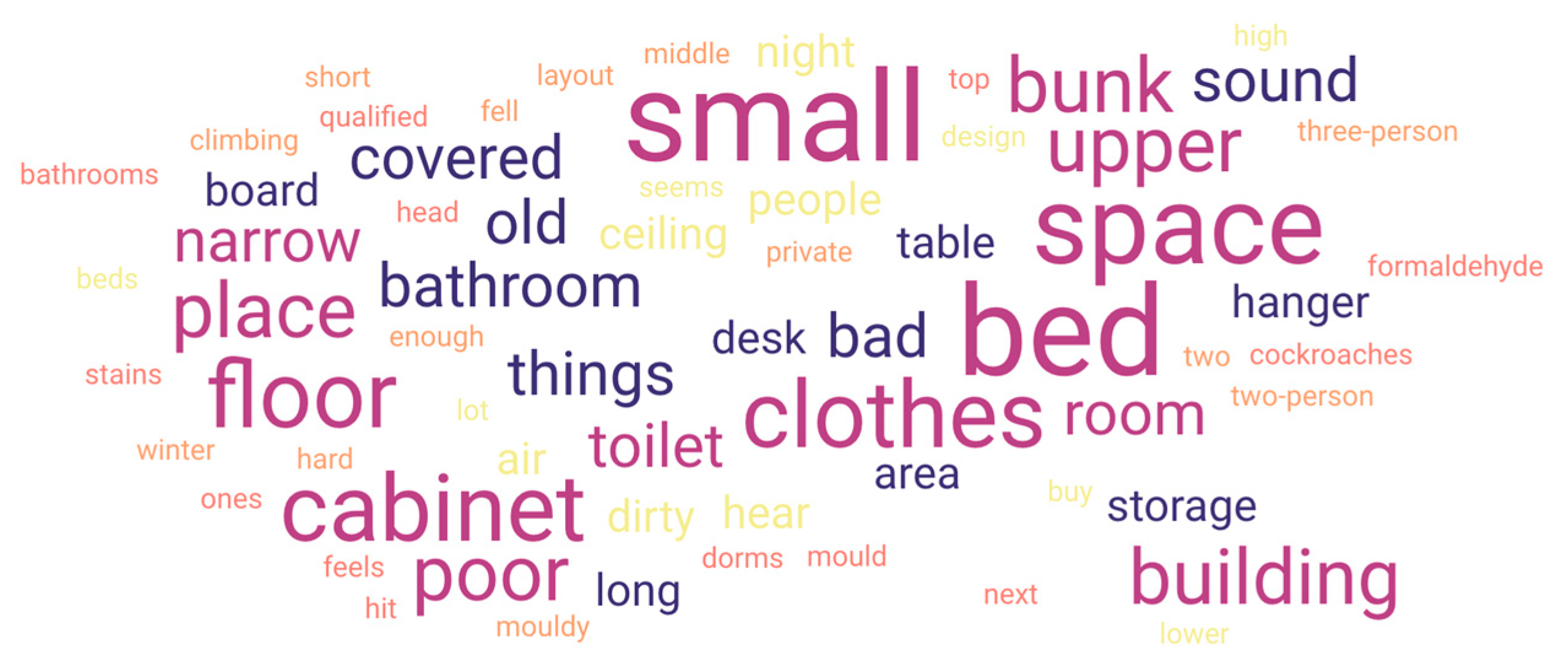 | Uncomfortable spatial layout (bed height, desk design, narrowness) | 21 |