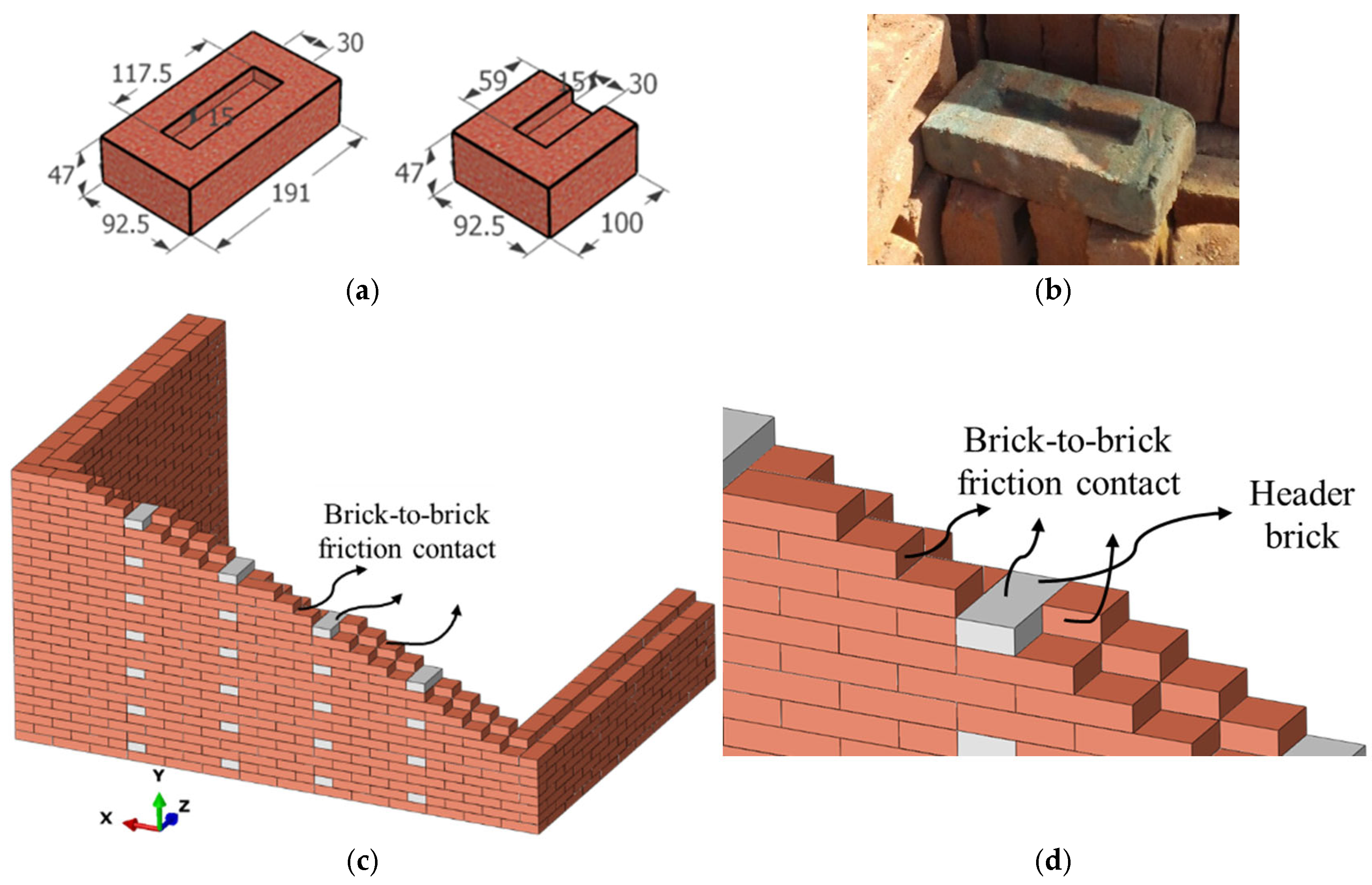 - The use of header bricks not only increased the load capacity but also increased the stiffness and reduced the deformation. The header bricks provided a significant advantage for the walls in terms of strength and stability, especially under seismic activity.