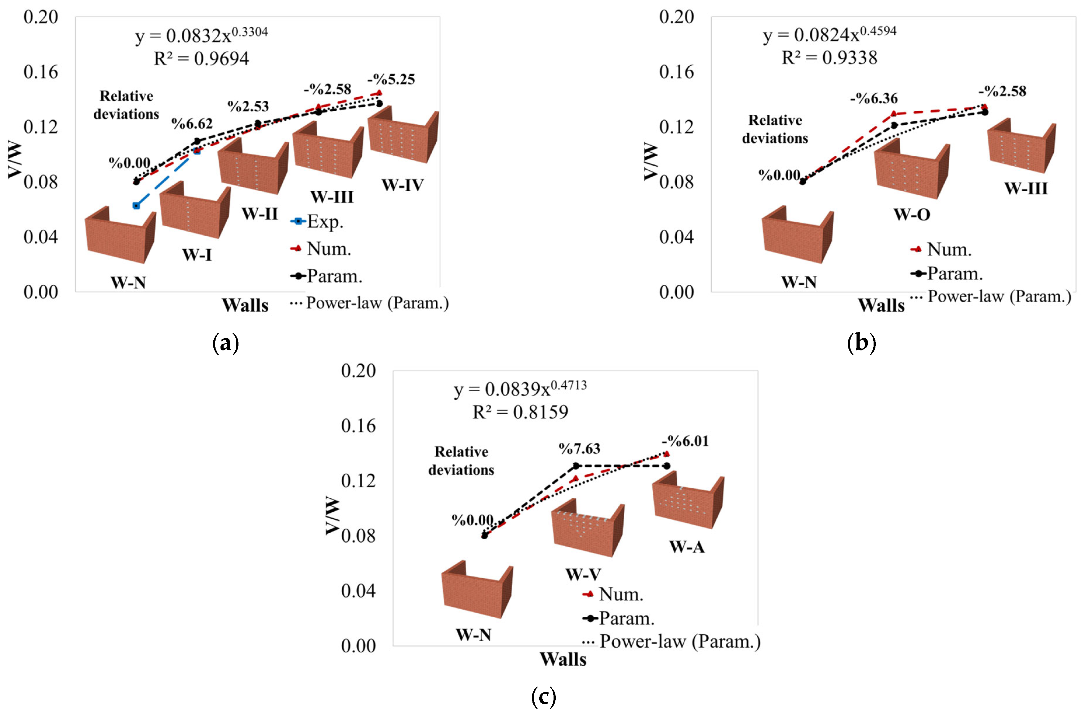 | Wall Model | Experimental Average (V/W) (%) | Numerical Average (V/W) (%) | L Point (75% V/W NOW) | Number of Header Bricks | Parametric Approach | |||||||