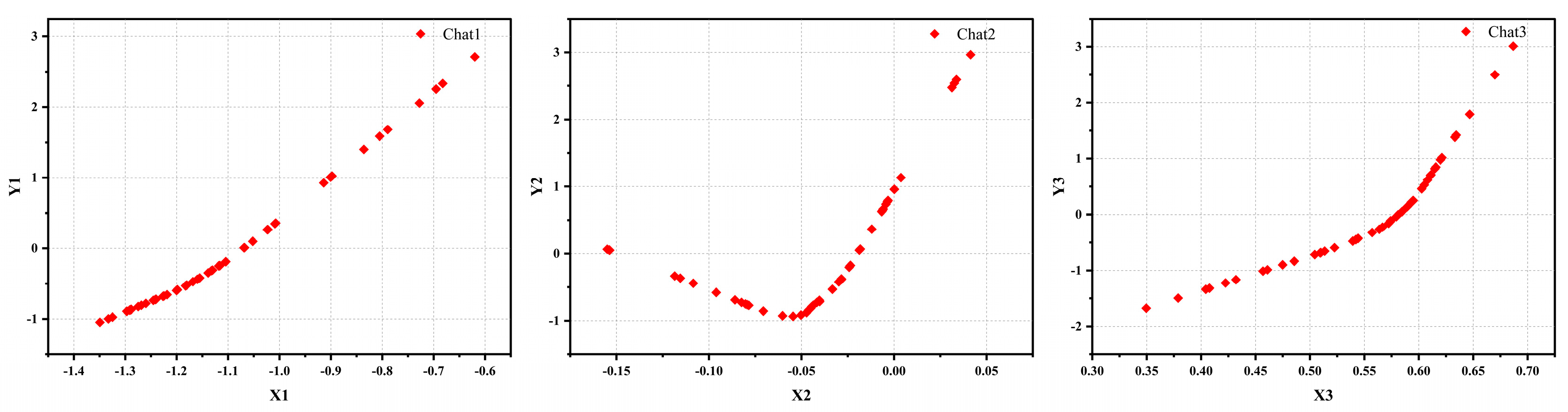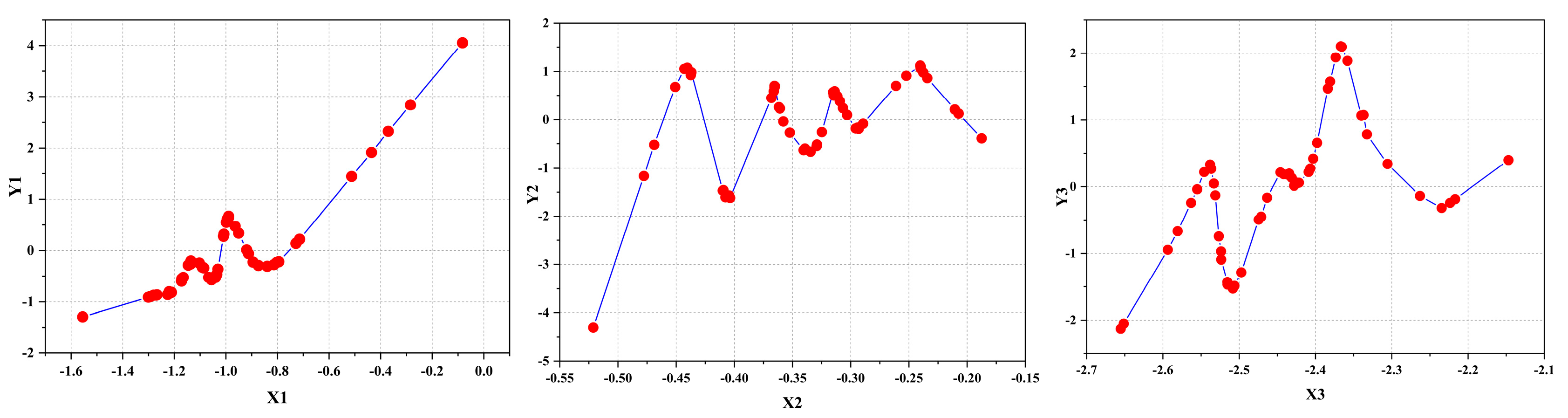 By comparing the modeling parameters in Table 5 and Table 6, the optimal modeling parameters were established. The final selected model parameter table is shown in Table 7. M represents the upper limit of ridge function levels, Mu denotes the optimal number of ridge functions, P indicates the relative error, N signifies the sample size, and Q represents the number of output variables. Together, these parameters determine the precision with which the model identifies the intrinsic structure of the data.