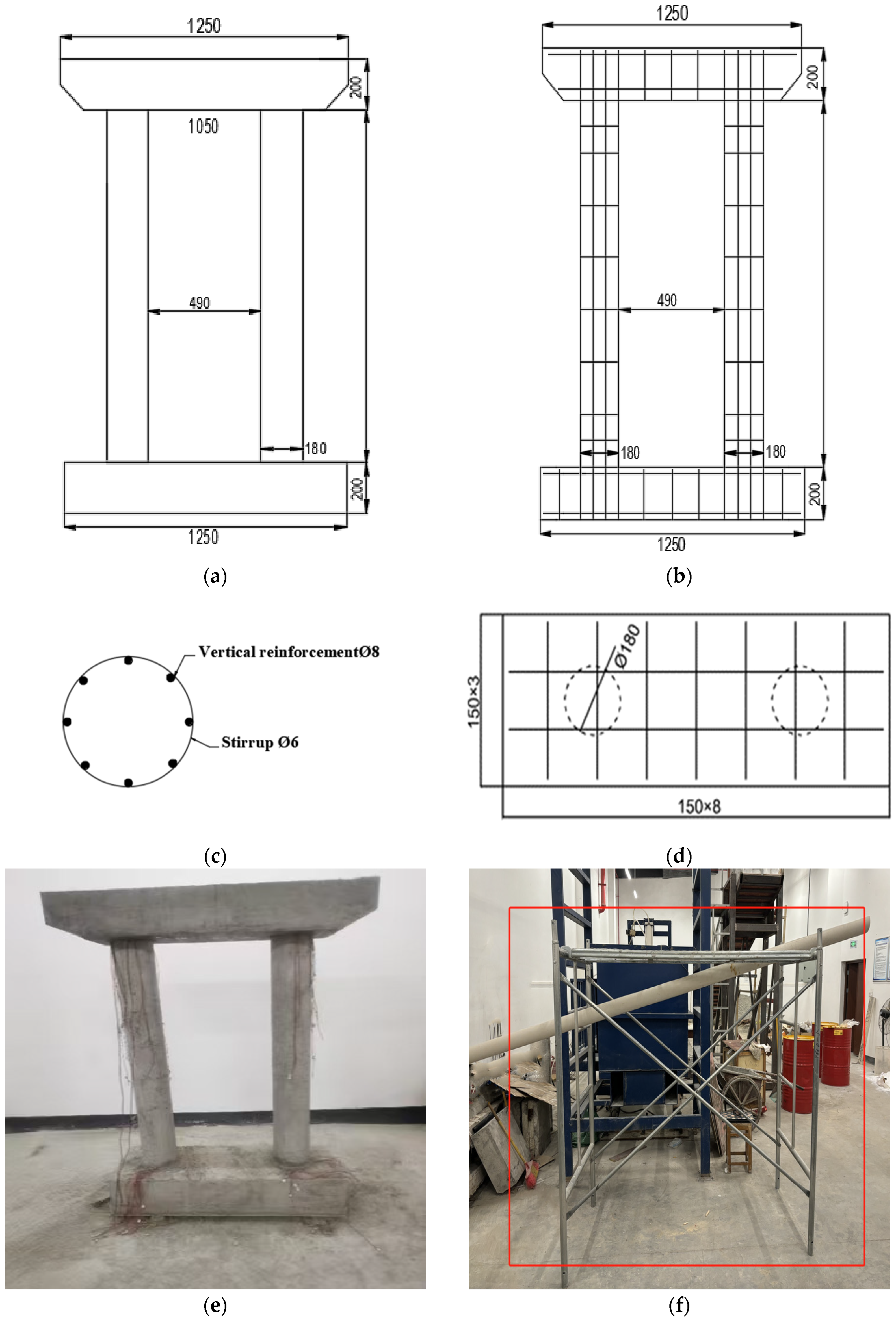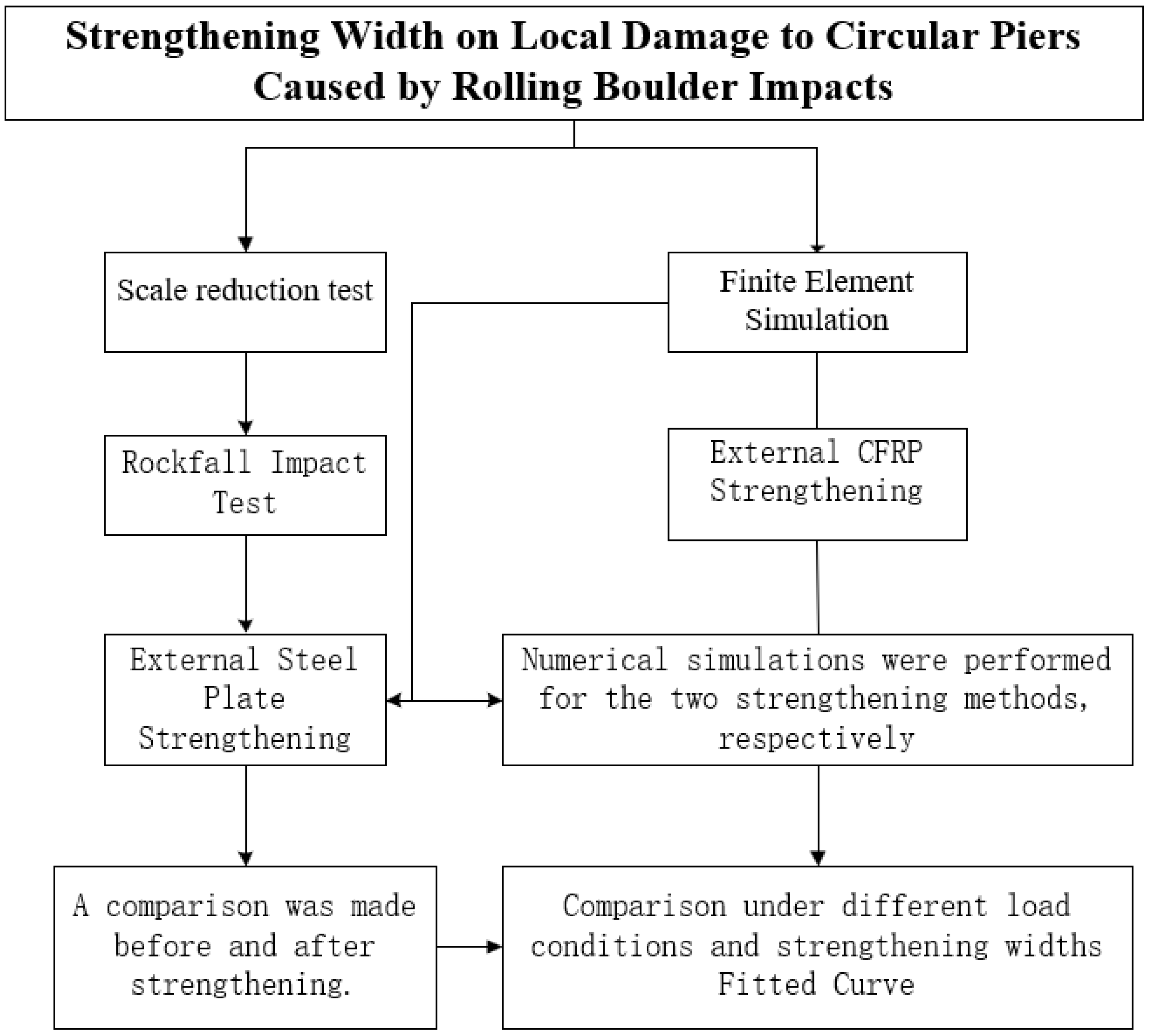 - Luo, H. Research on Strengthening Methods for Local Damage of Piers Caused by Rockfall Impacts. Master’s Thesis, Chongqing University of Science and Technology, Chongqing, China, 2024. [Google Scholar]