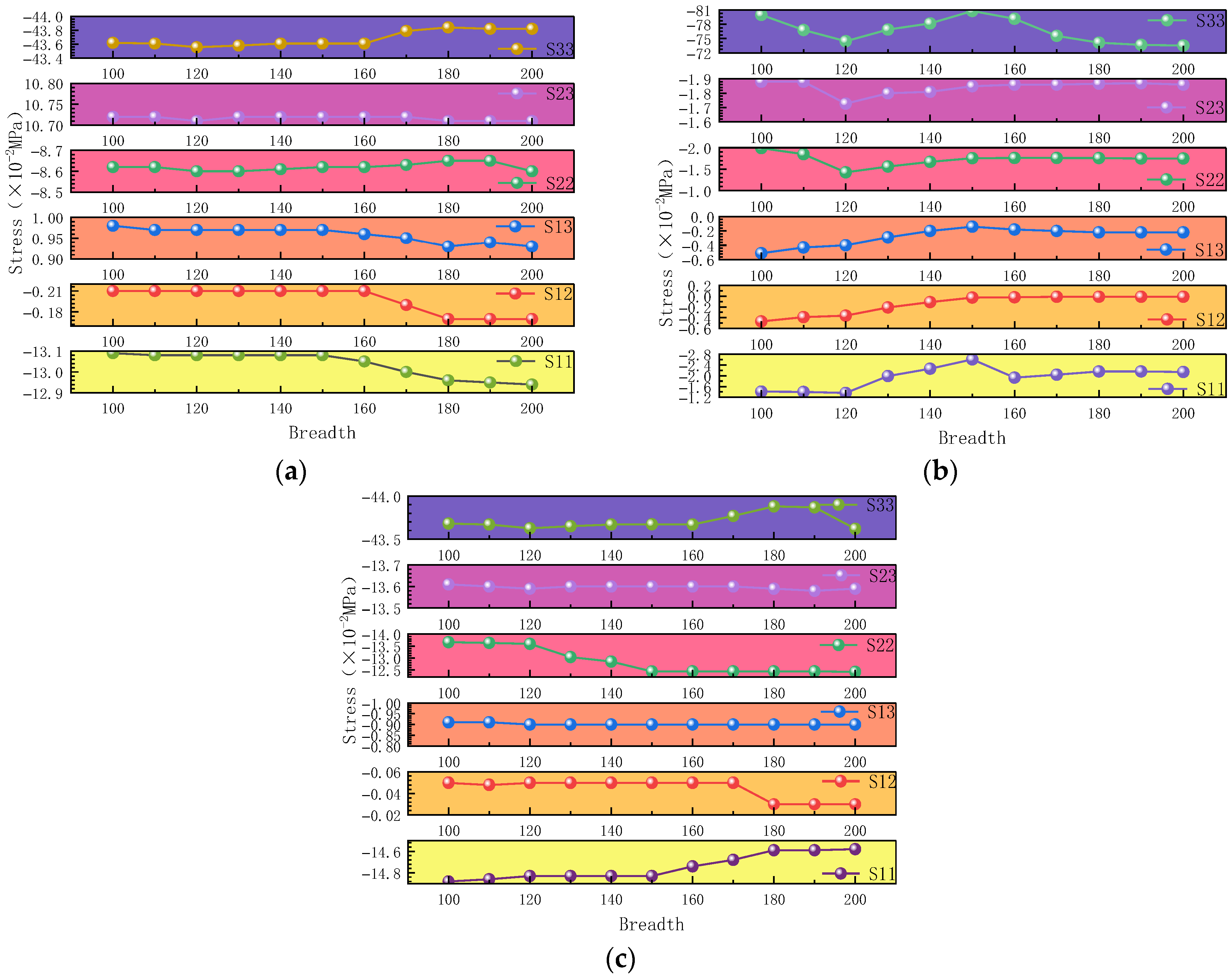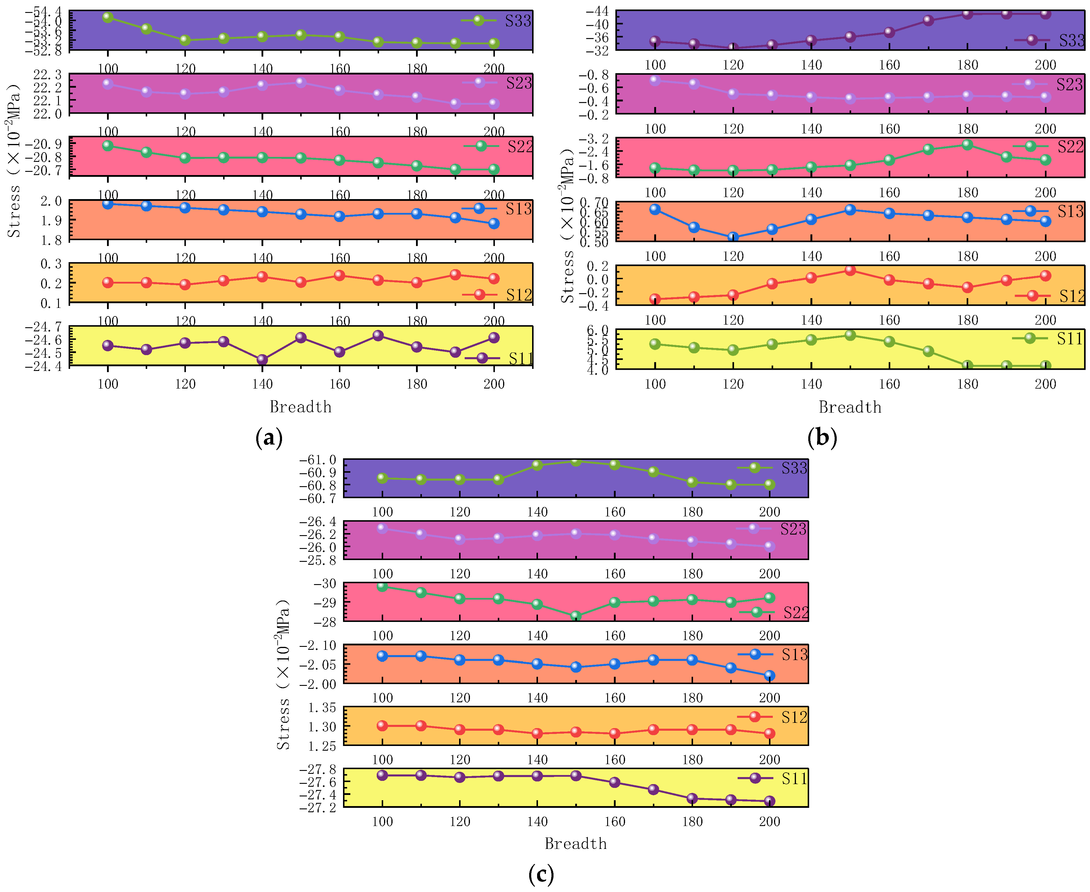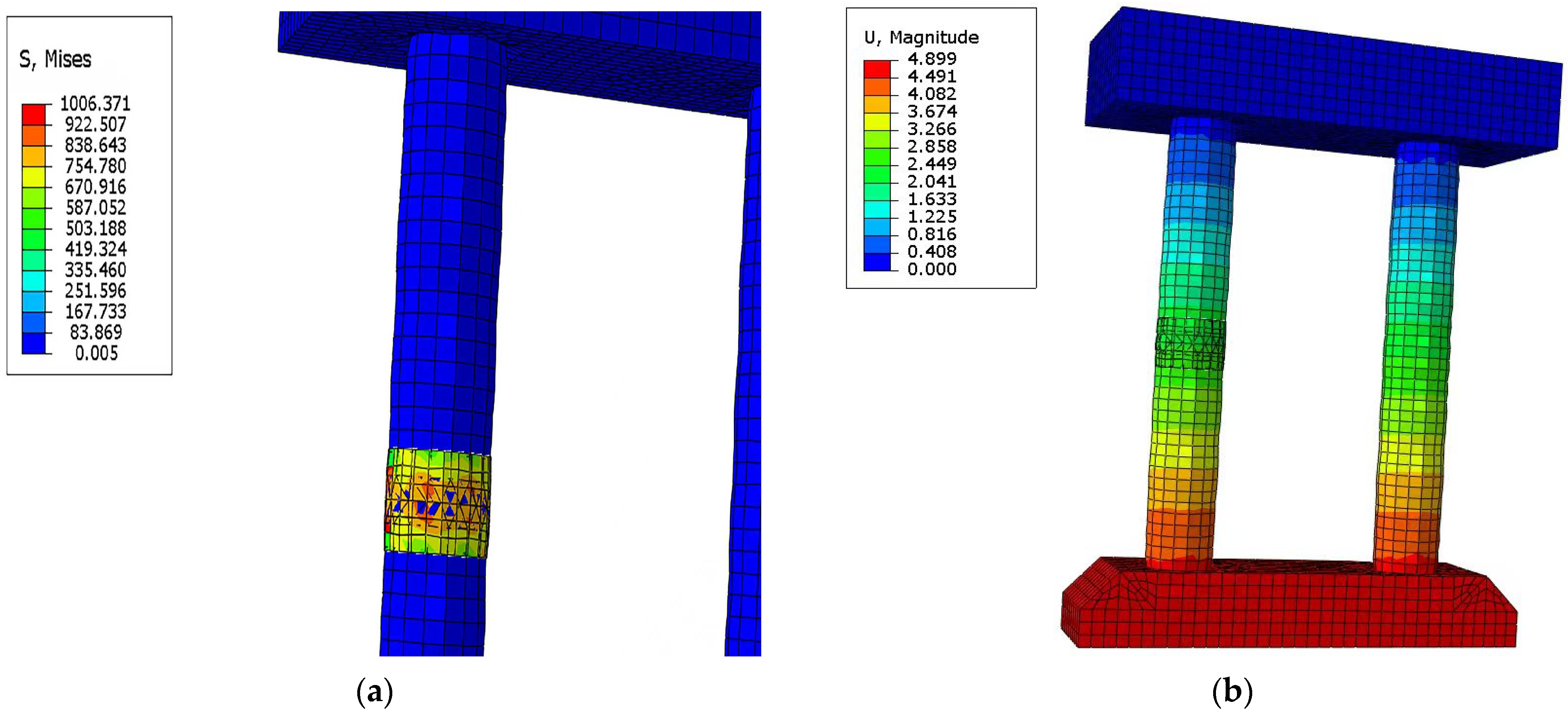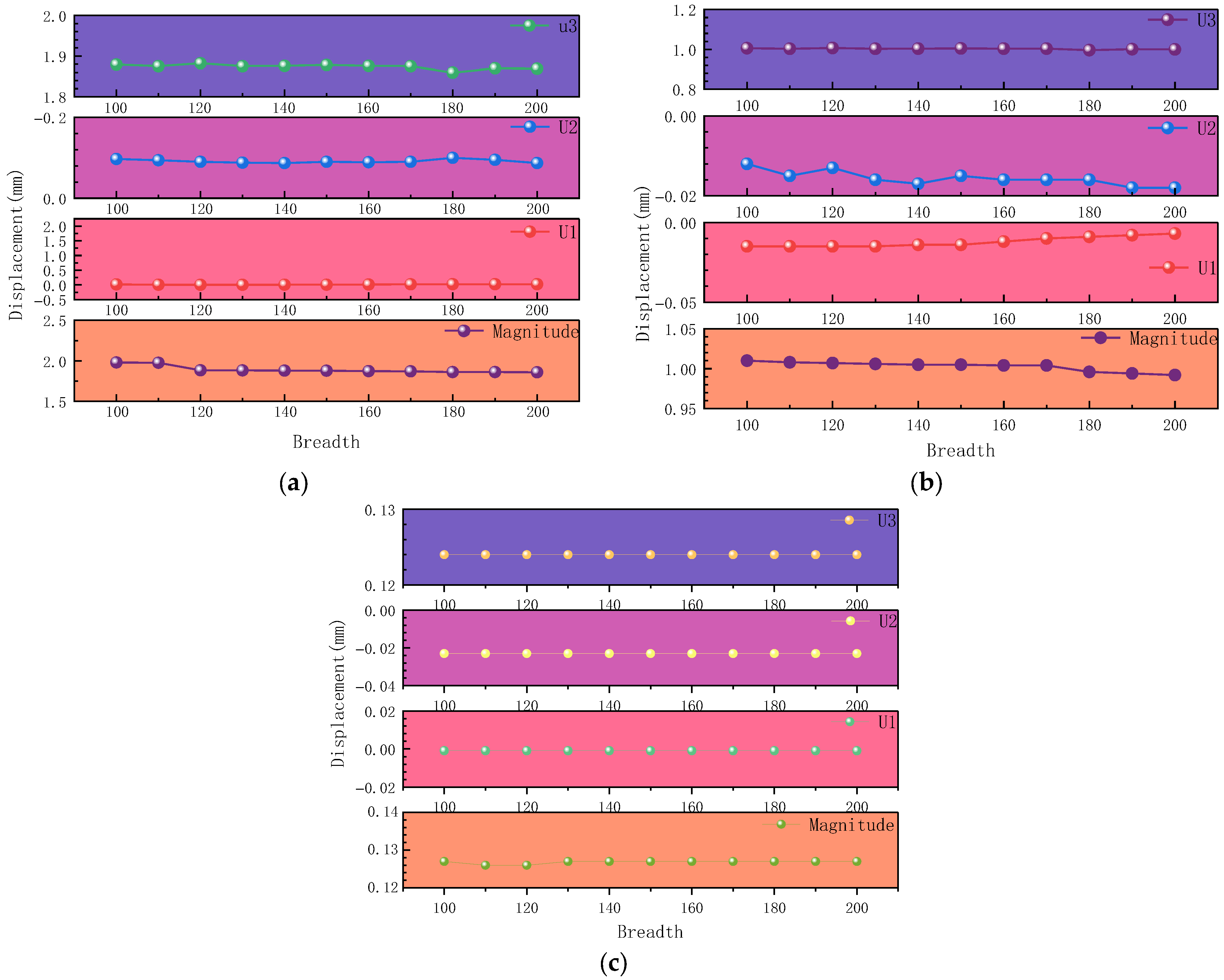 - Strengthening width significantly affects the structural response, with the most pronounced effect observed at the pier’s mid-height (L/2) section. Both stress distribution and displacement variations show substantial sensitivity to width changes under different loading conditions.