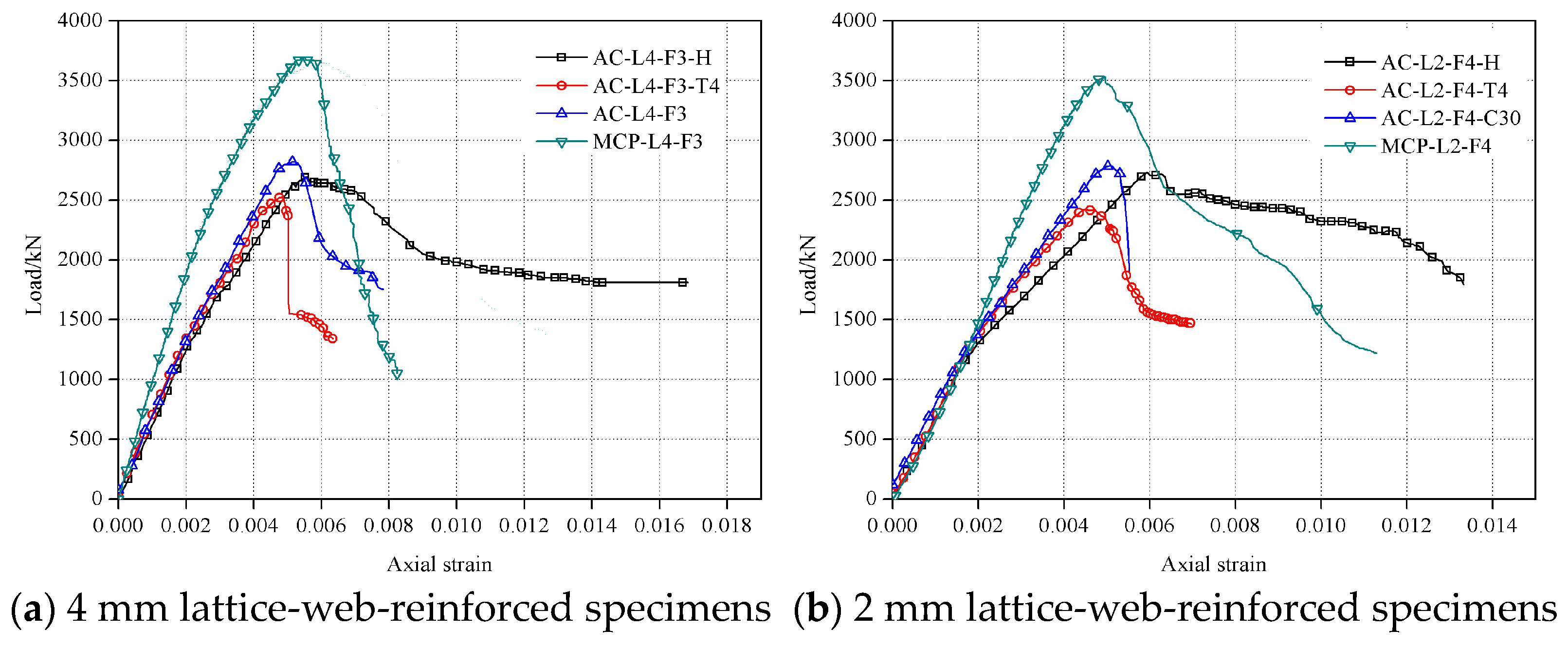- Chen, J.; Fang, H.; Zhuang, Y.; Shen, Z.; He, W. Lateral compressive behavior of multi-layer lattice-web reinforced composite cylinders. Eng. Struct. 2024, 306, 117834. [Google Scholar] [CrossRef]