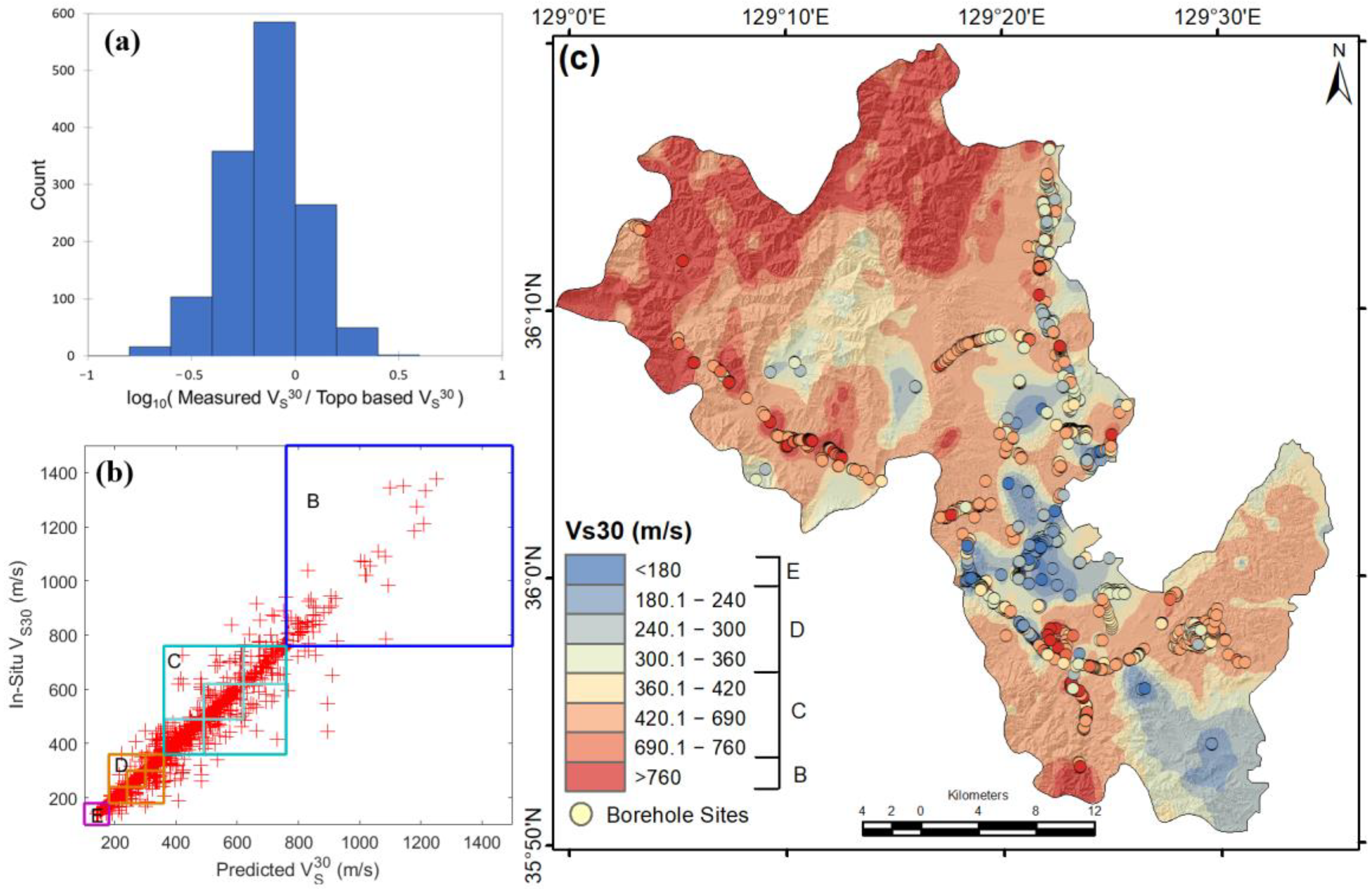 - Sahin, G.; Okalp, K.; Kockar, M.K.; Yilmaz, M.T.; Jalehforouzan, A.; Temiz, F.A.; Askan, A.; Akgun, H.; Erberik, M.A. Development of a GIS-Based Predicted-VS 30 Map of Türkiye Using Geological and Topographical Parameters: Case Study for the Region Affected by the 6 February 2023 Kahramanmaraş Earthquakes. Seismol. Res. Lett. 2024, 95, 2044–2057. [Google Scholar] [CrossRef]