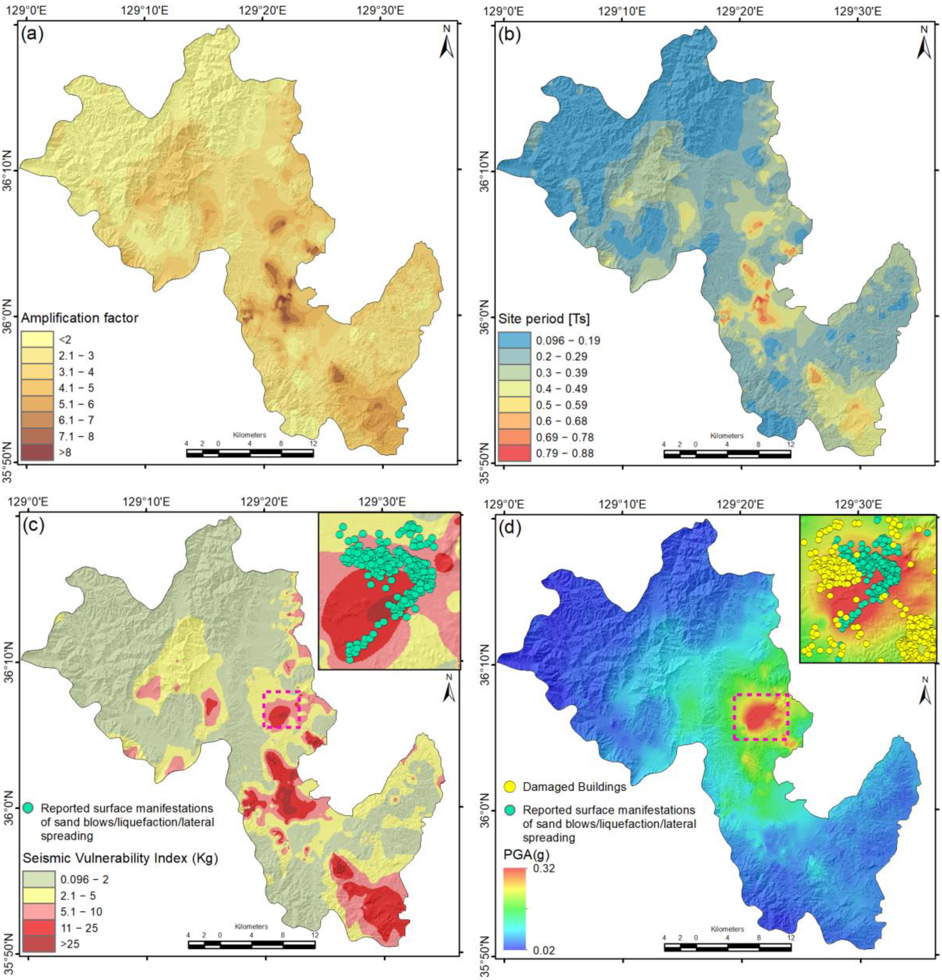 | Liquefaction/sand boils/lateral spreading Sites | Gihm et al. [15]; Kim et al. [22]; Kang et al. [23]; Seon et al. [58] | Surface manifestations of Liquefaction/sand boils/lateral spreading due to the 2017 Pohang earthquake |