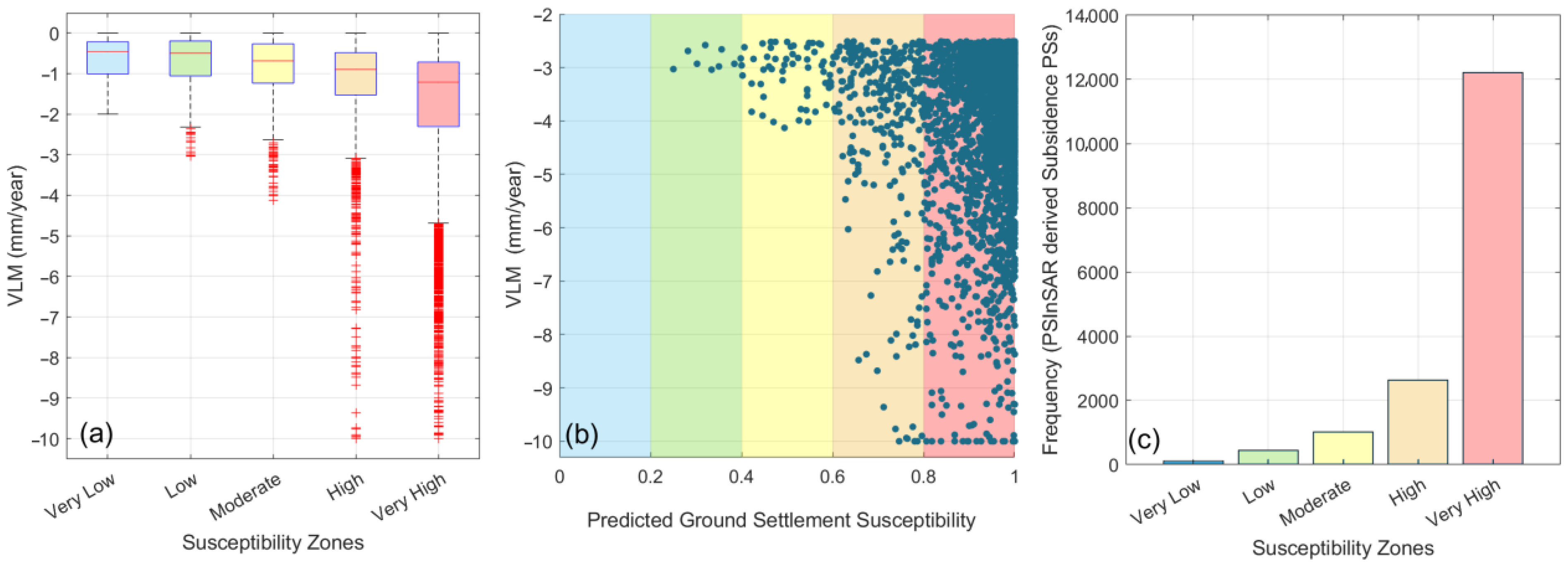 4.1. Spatial Distribution of PSInSAR-Derived VLM