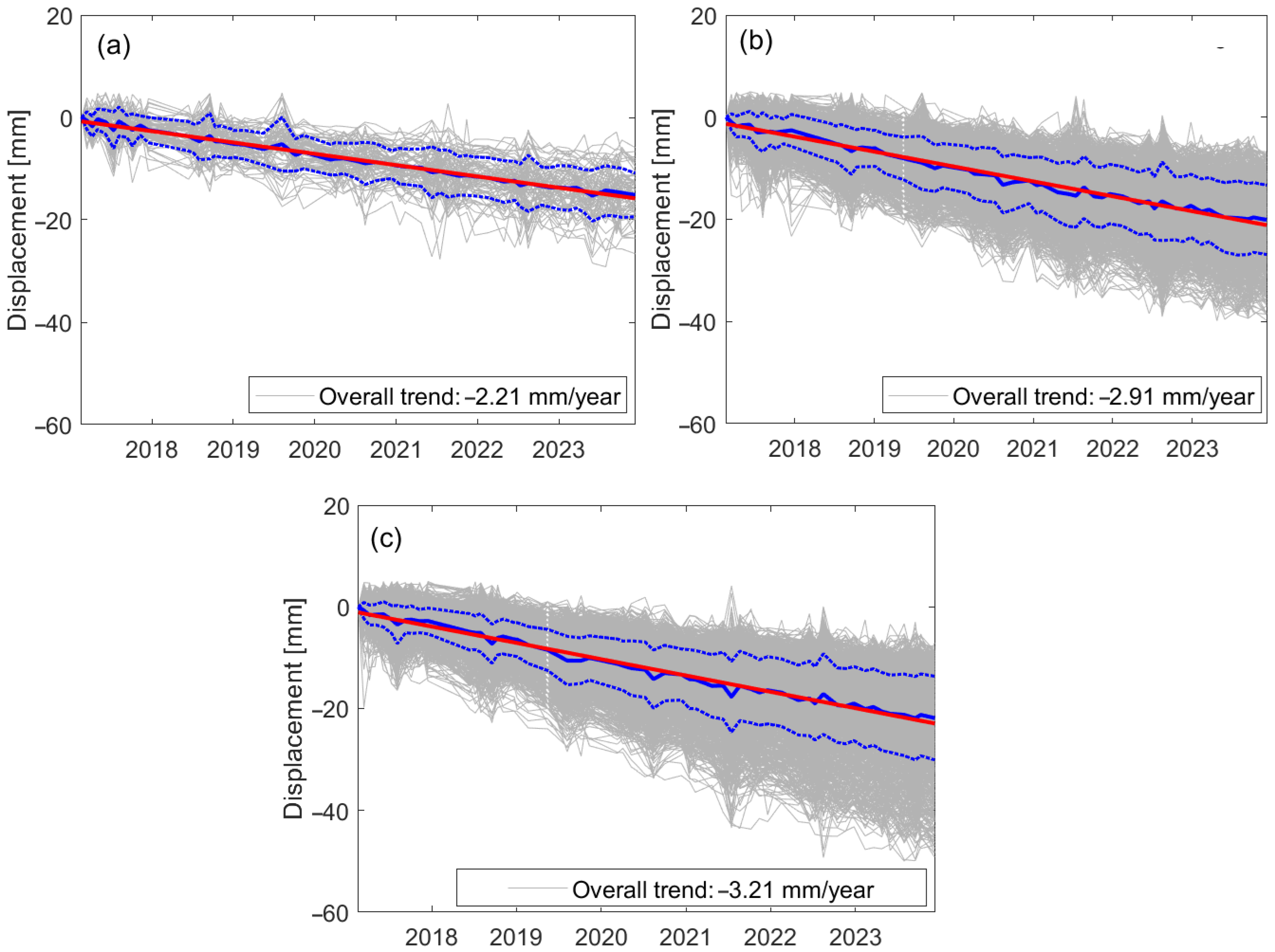 - Park, S.W.; Hong, S.H. Nonlinear modeling of subsidence from a decade of InSAR time series. Geophys. Res. Lett. 2021, 48, e2020GL090970. [Google Scholar] [CrossRef]