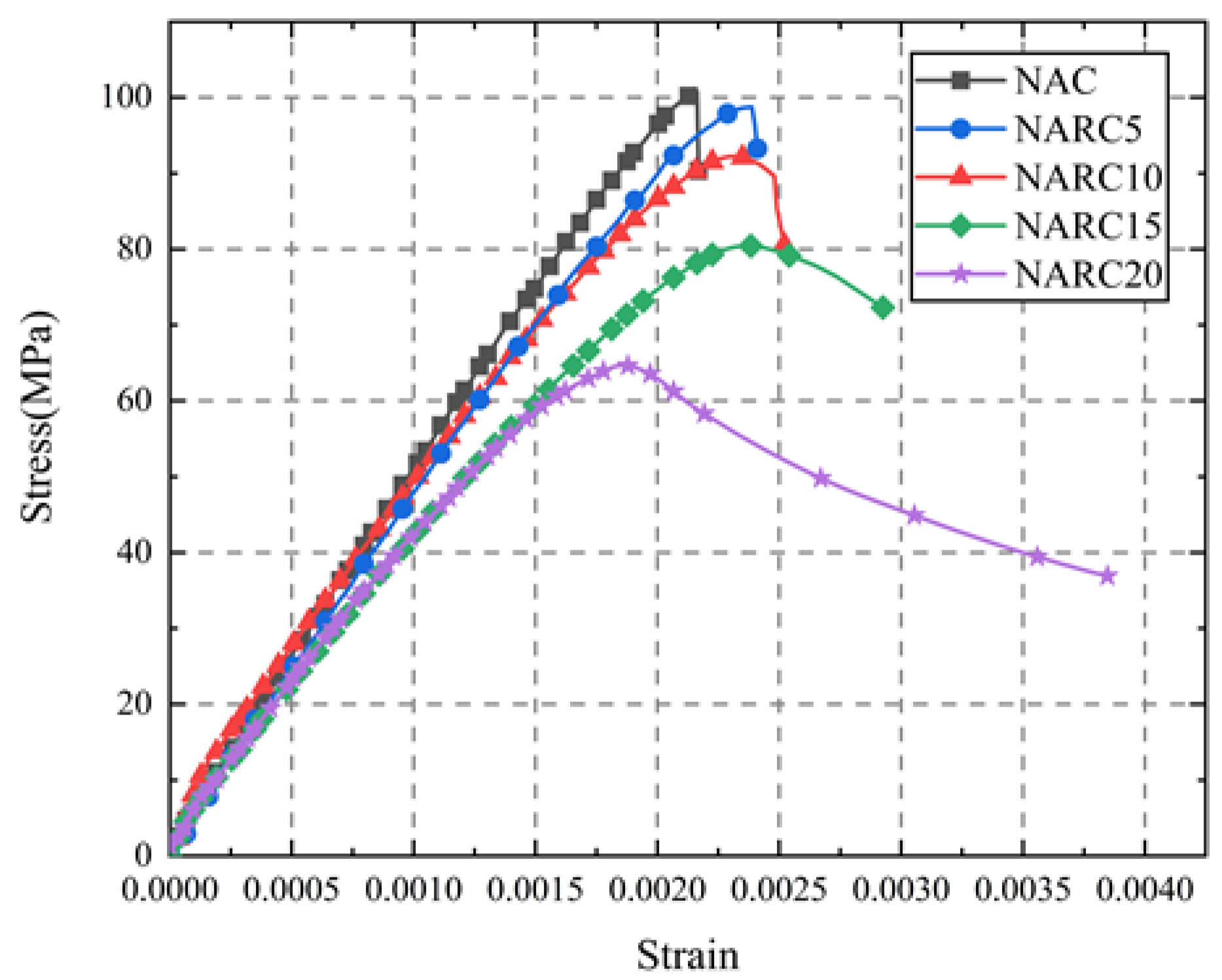 - Future research should focus on optimizing rubber–cement interfacial bonding to enable higher rubber content without strength loss and investigating NARC’s impact resistance under harsh environments (e.g., fires, oceans, and cold regions).