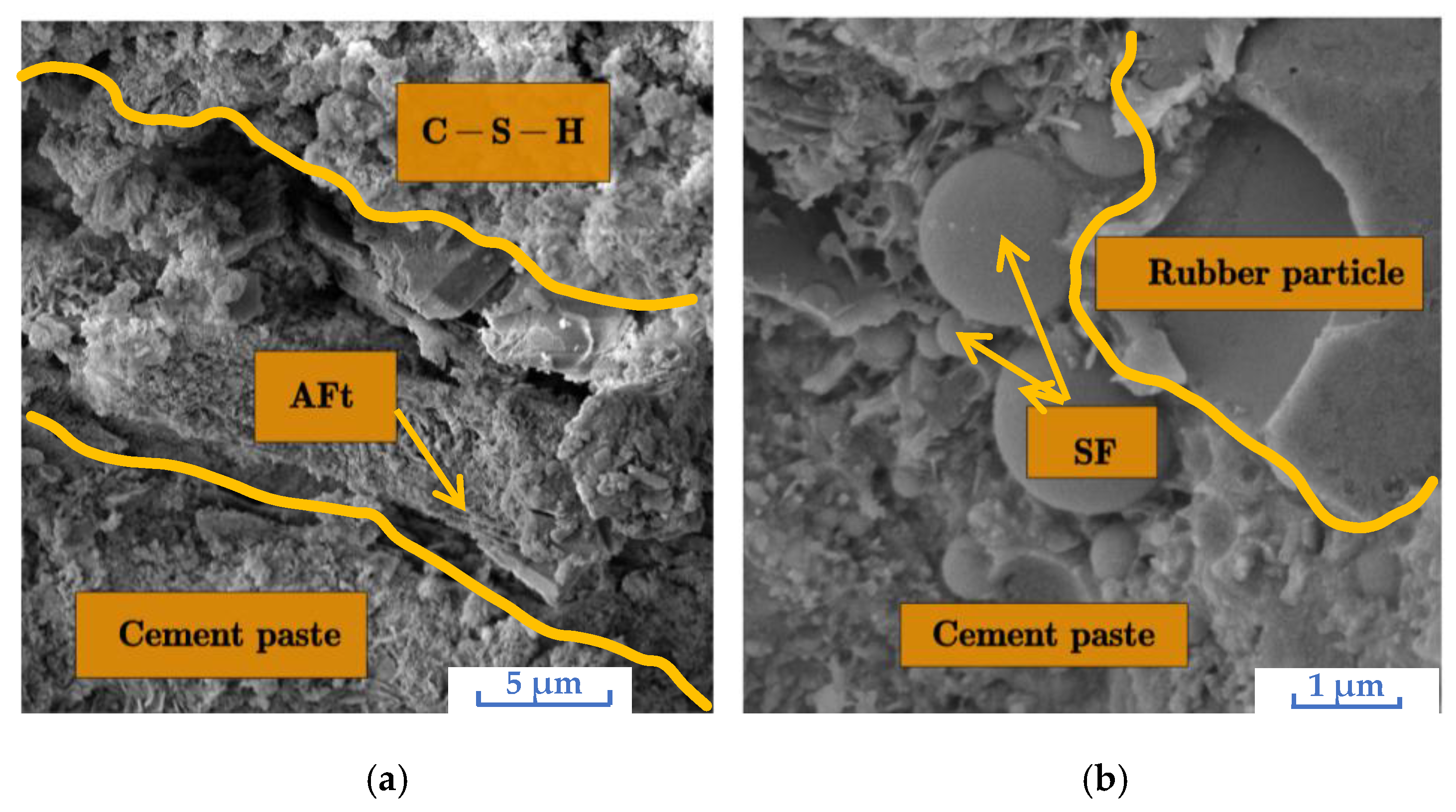 - Abdelmonem, A.; El-Feky, M.S.; Nasr, E.-S.A.R.; Kohail, M. Performance of high strength concrete containing recycled rubber. Constr. Build. Mater. 2019, 227, 116660. [Google Scholar] [CrossRef]