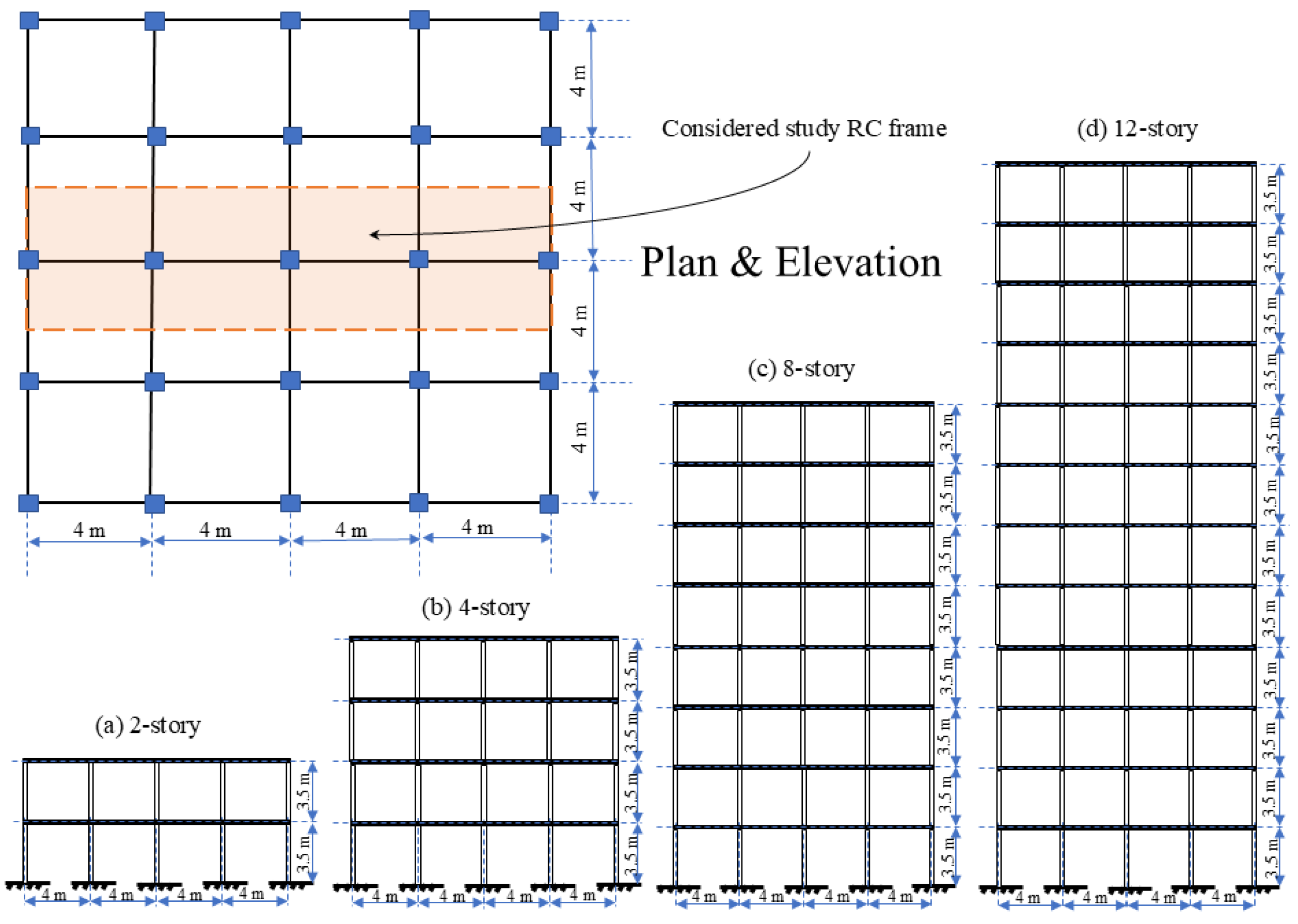 3.1. Mathematical Modeling of RC Building Frames
