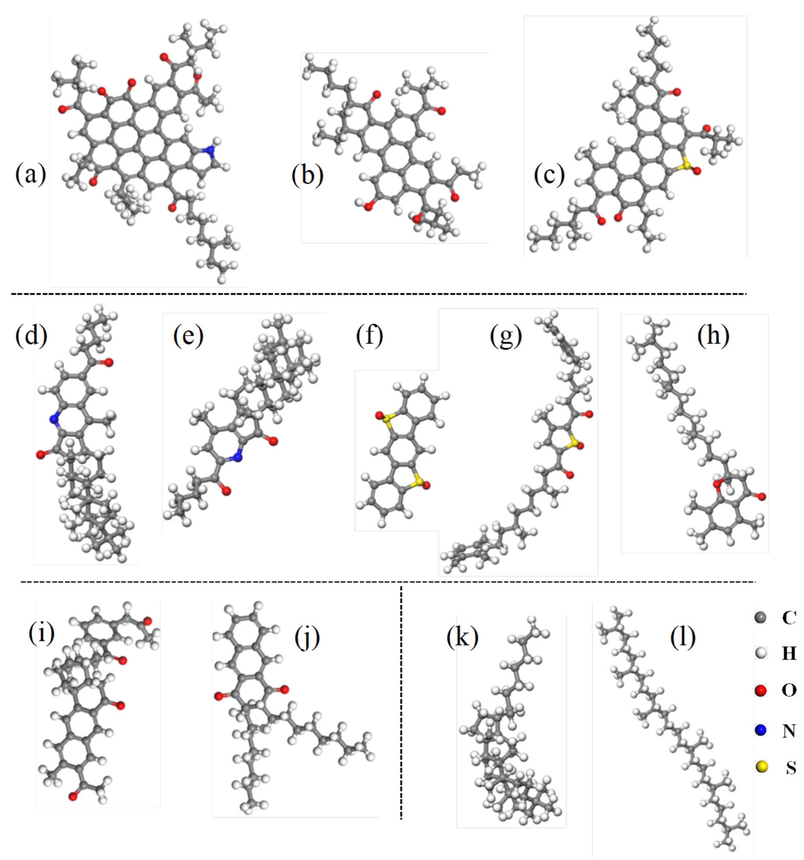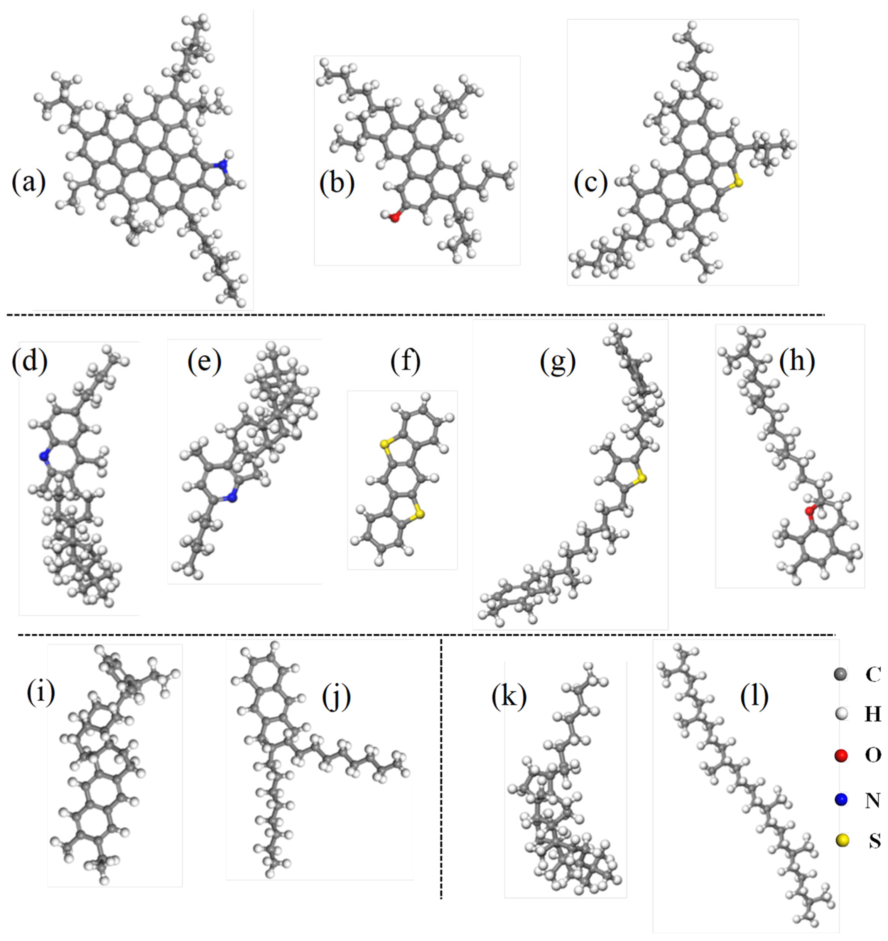 | Asphaltenes | a | 2 | C66H81N | C66H67NO7 |