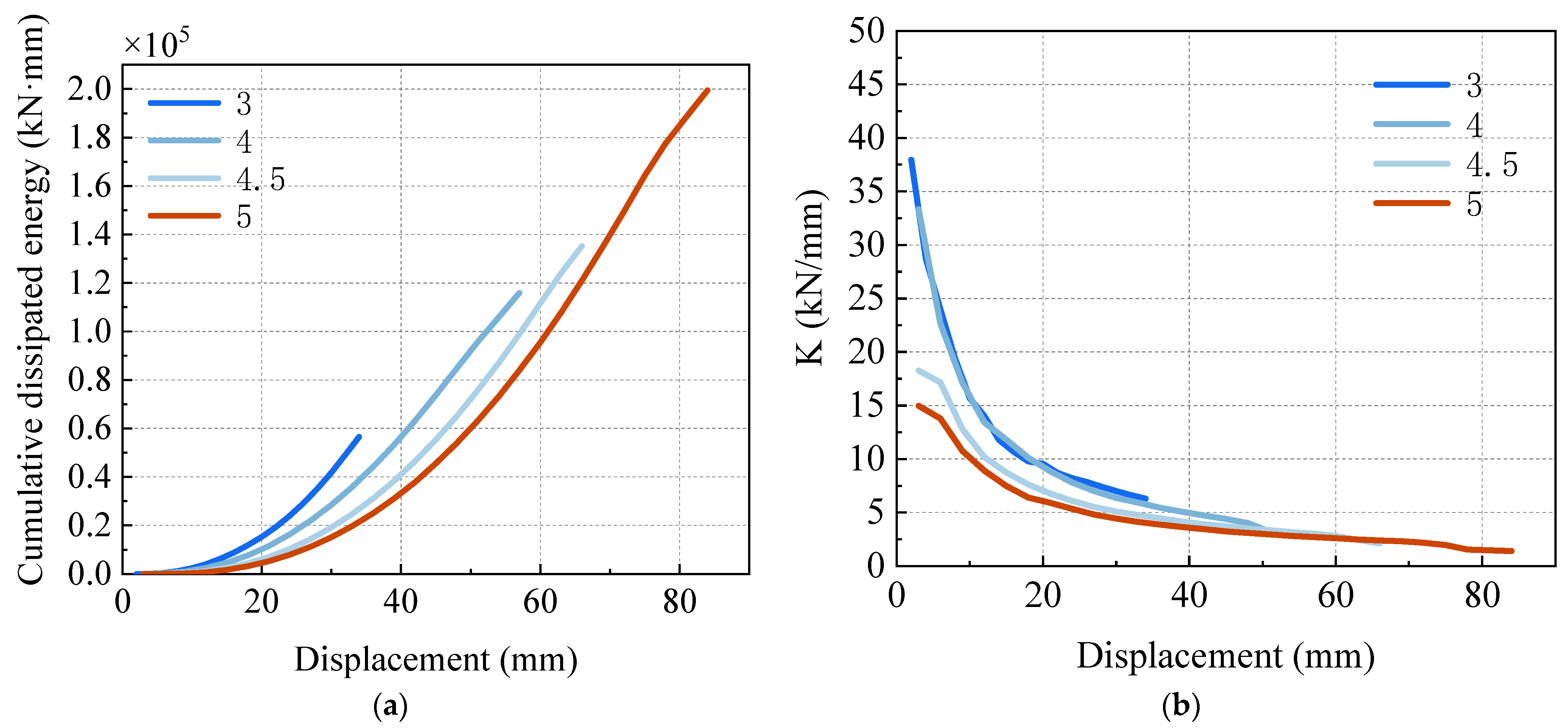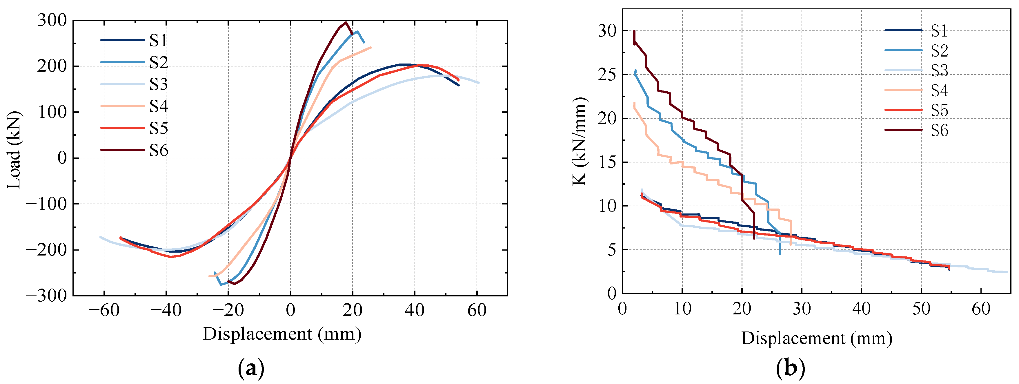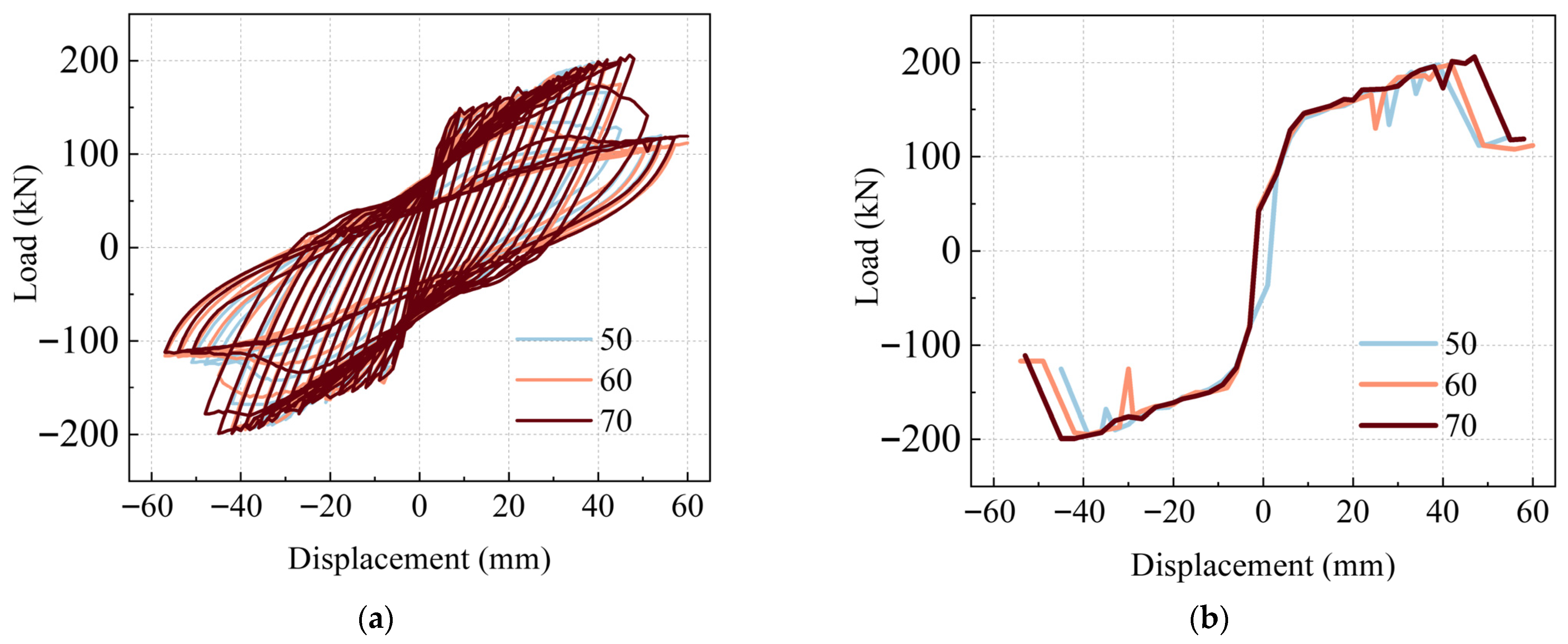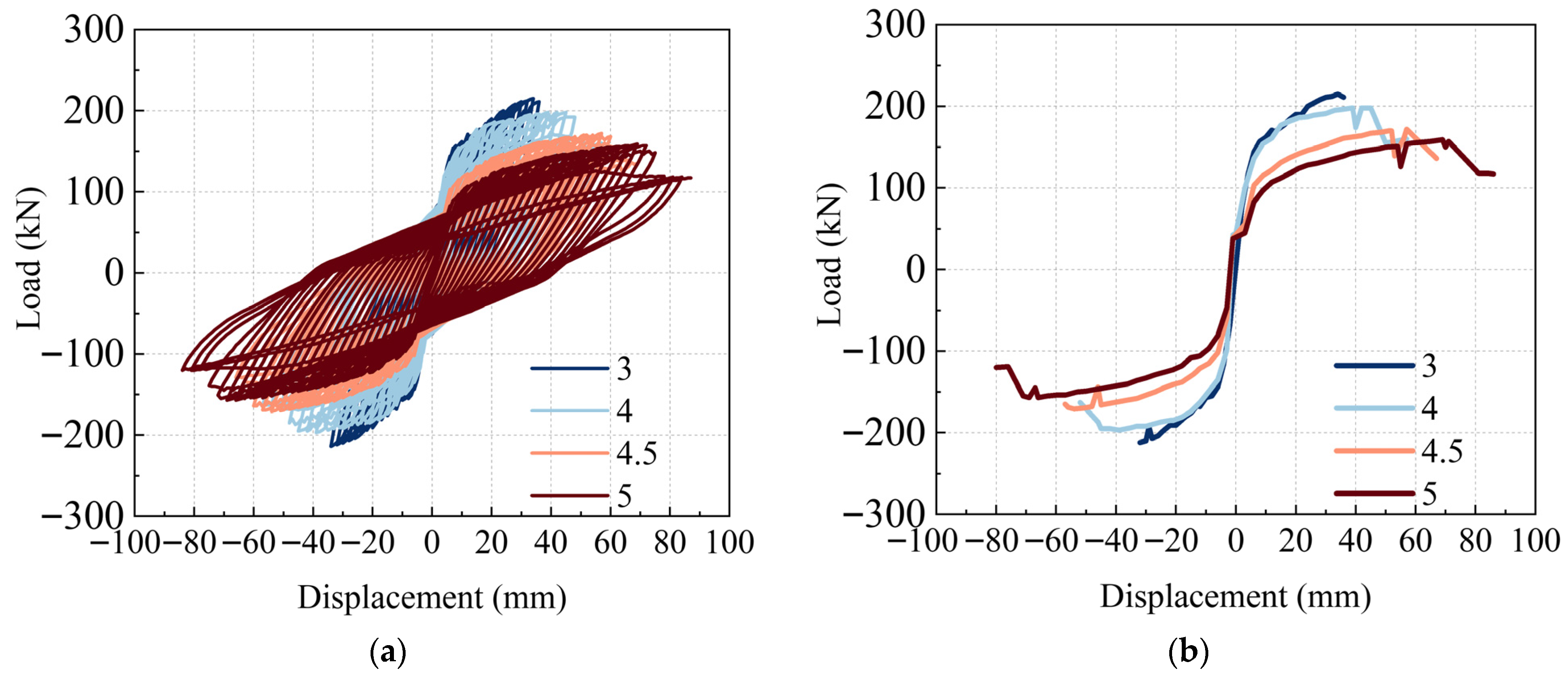3.3.2. Hysteresis Curves and Skeleton Curves