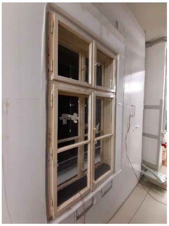 Existing studies have explored various aspects of box-type window performance, including air exchange rates, thermal insulation, and material impacts. Restoration measures such as sealing and glazing upgrades have demonstrated substantial improvements in energy efficiency [16,17]. The heat transfer coefficient (U-value) of a historic box-type window in the Old Viennese style (Figure 1) is 2.5 W/m2 in poor condition (Figure 2) and can be improved by around 25% through restoration measures alone, without any structural modifications [18]. Window ventilation and leakage play a significant role in a building’s overall energy performance [19]. Studies on historic buildings with box-type windows have shown that these windows can allow for considerable air exchange even without user interaction. Renovation efforts can significantly reduce this unintended airflow, improving energy efficiency [20]. Further research into the hygrothermal behavior of box-type windows revealed that the level of air exchange varies depending on whether the inner or outer sashes are sealed, highlighting the complexity of managing ventilation in heritage window systems [21]. However, such measures could result in lower indoor air quality depending on a building’s ventilation system [17].