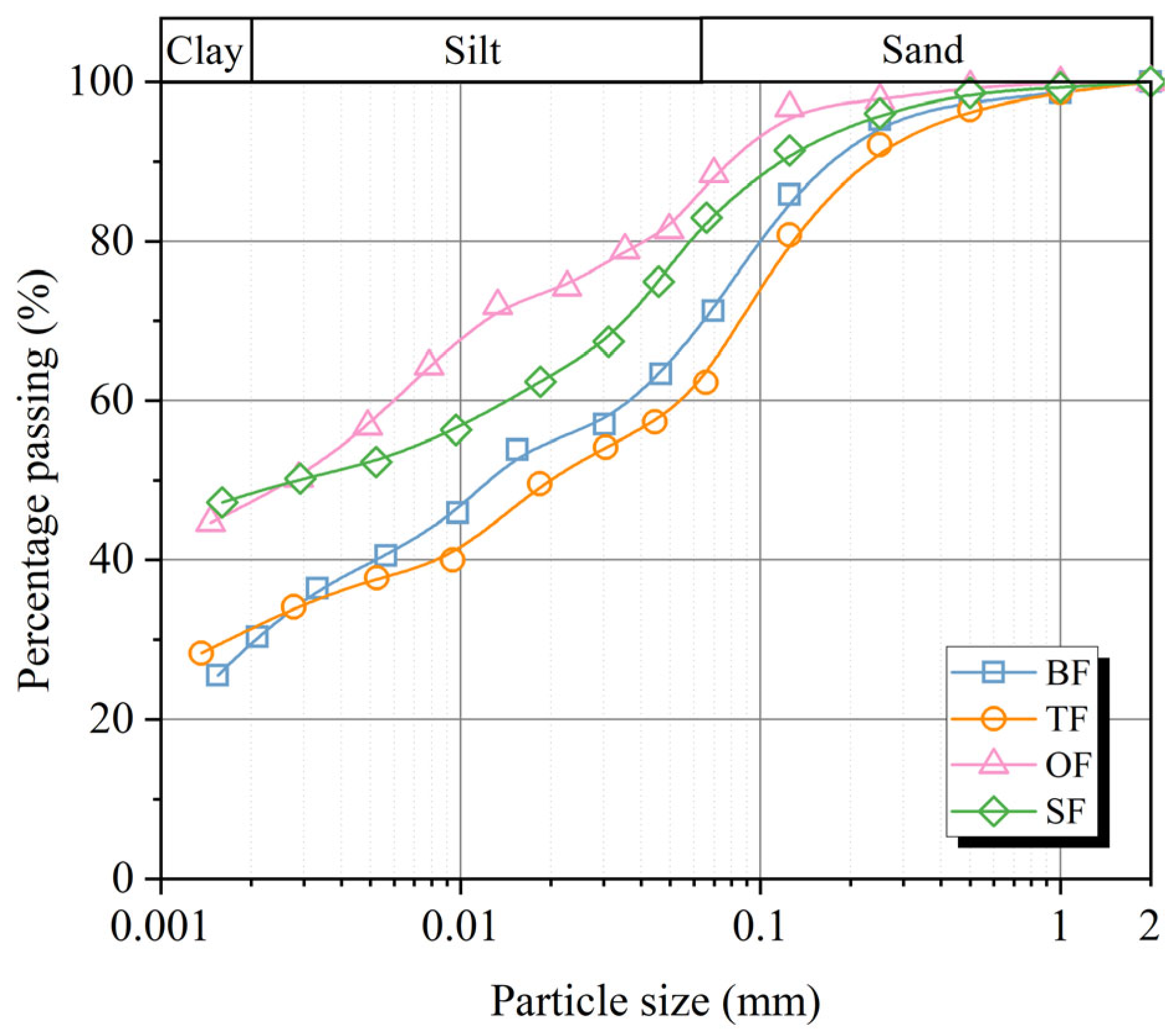 - ASTM D7928-17; Standard Test Method for Particle-Size Distribution (Gradation) of Fine-Grained Soils Using the Sedimentation (Hydrometer) Analysis. ASTM International: West Conshohocken, PA, USA, 2017.