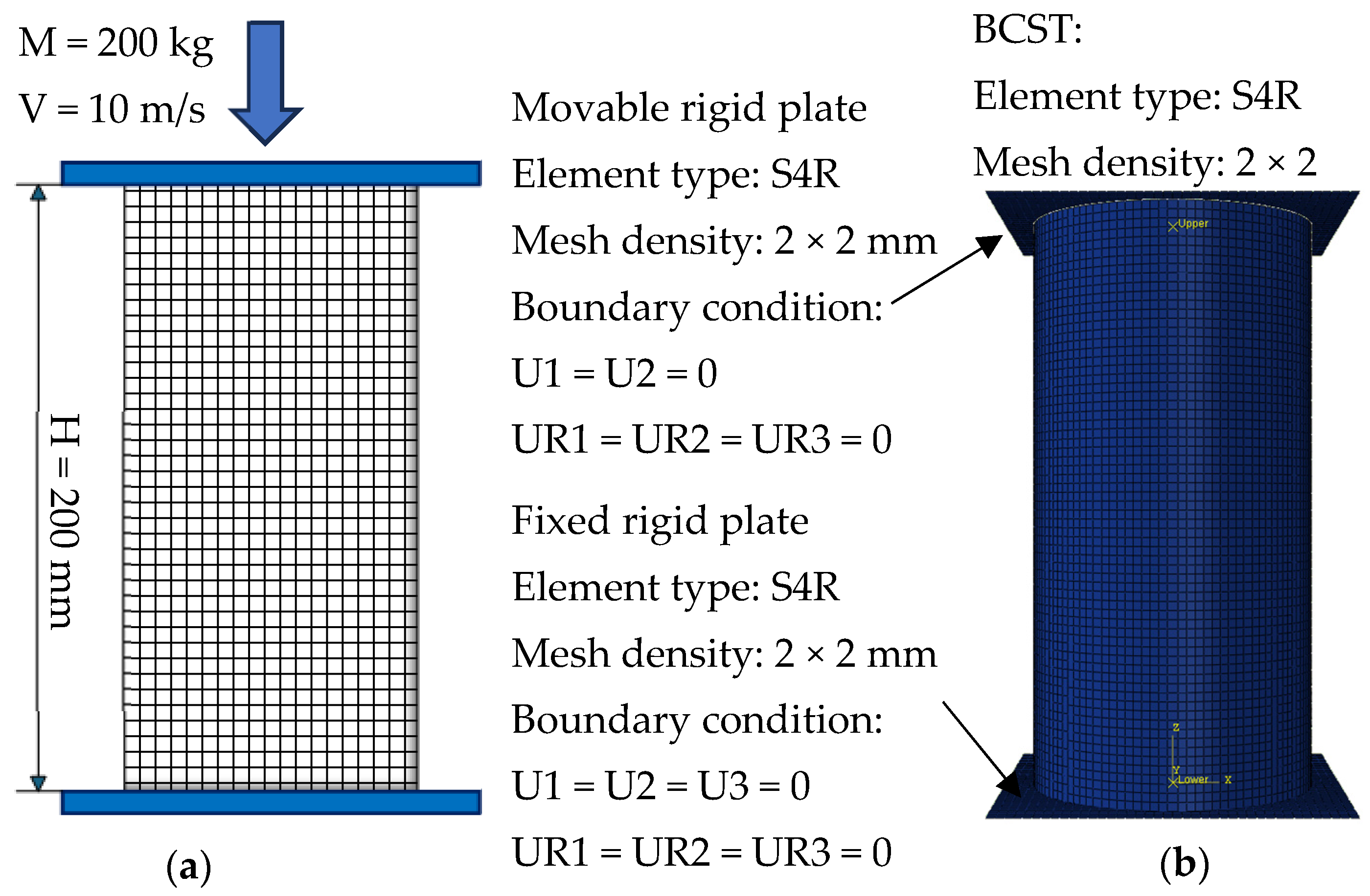 To verify the excellent impact resistance of BCST under axial impact, numerical simulations are performed on BCST and CT with the same mass under axial impact loading. The geometric dimensions of the BCST and CT are shown in
