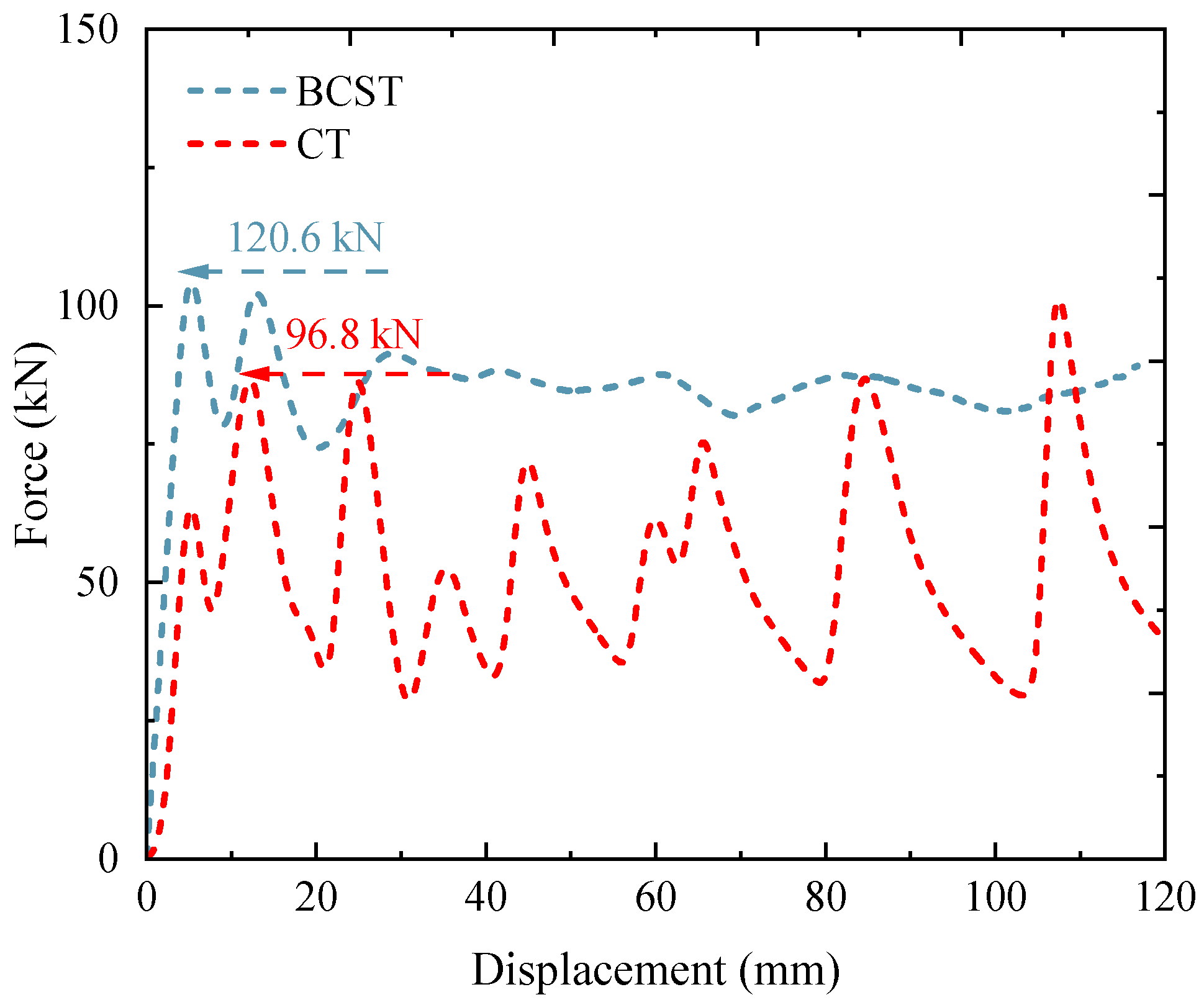 The force–displacement curves in