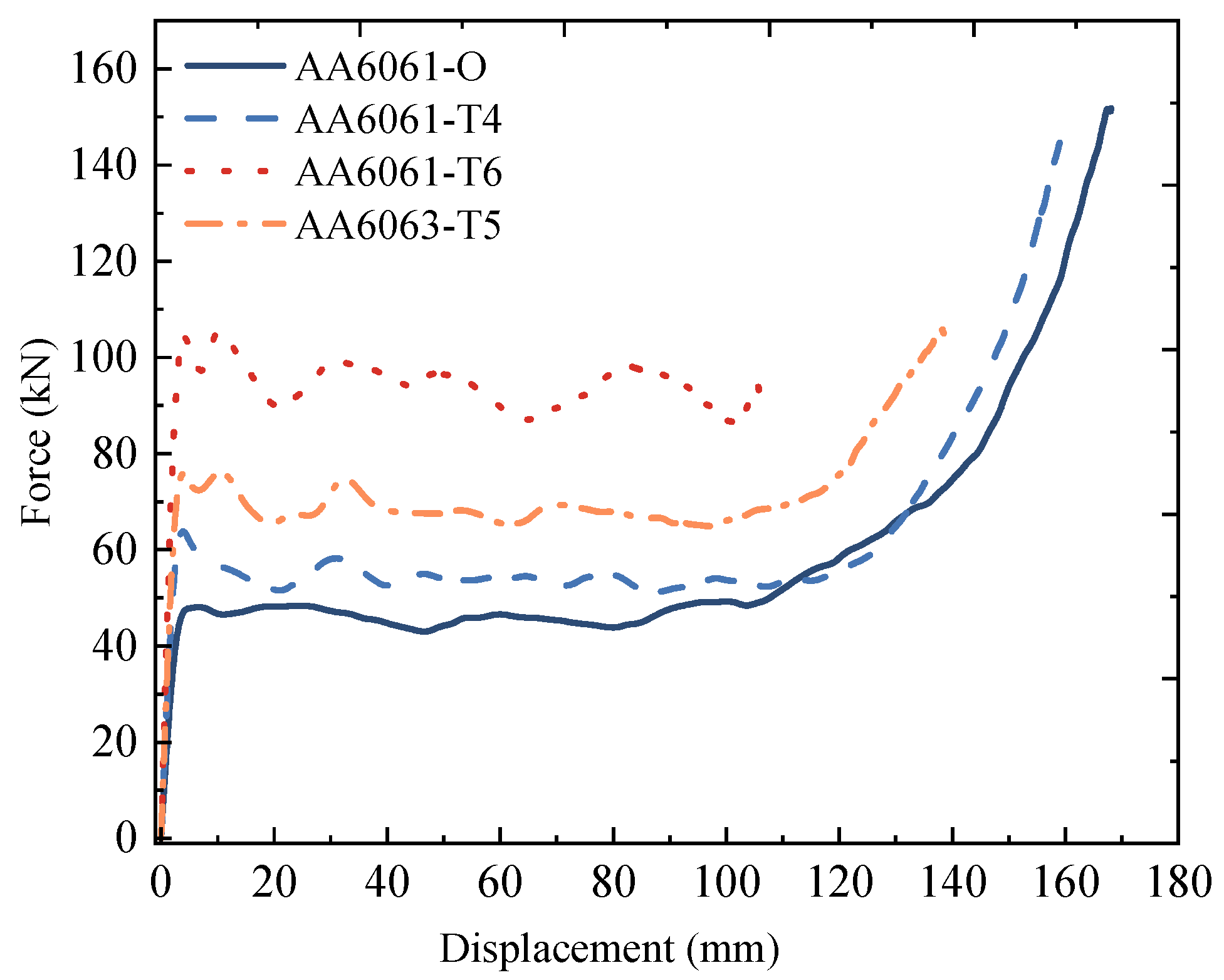 In order to deeply explore the effect of material selection on axial impact resistance, this research selects four aluminum alloys for FE simulation analysis. The alloys chosen are AA6061-O [