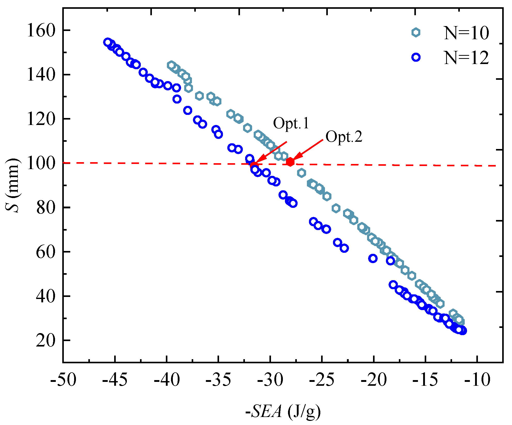 However, a key design trade-off is observed in the SEA, which exhibits a decreasing trend with increasing N. This is attributed to the fact that the structural mass increases at a faster rate than the total energy absorption. While the added mass contributes to higher stiffness and force levels, it ultimately reduces the mass-normalized energy absorption efficiency (i.e., SEA).