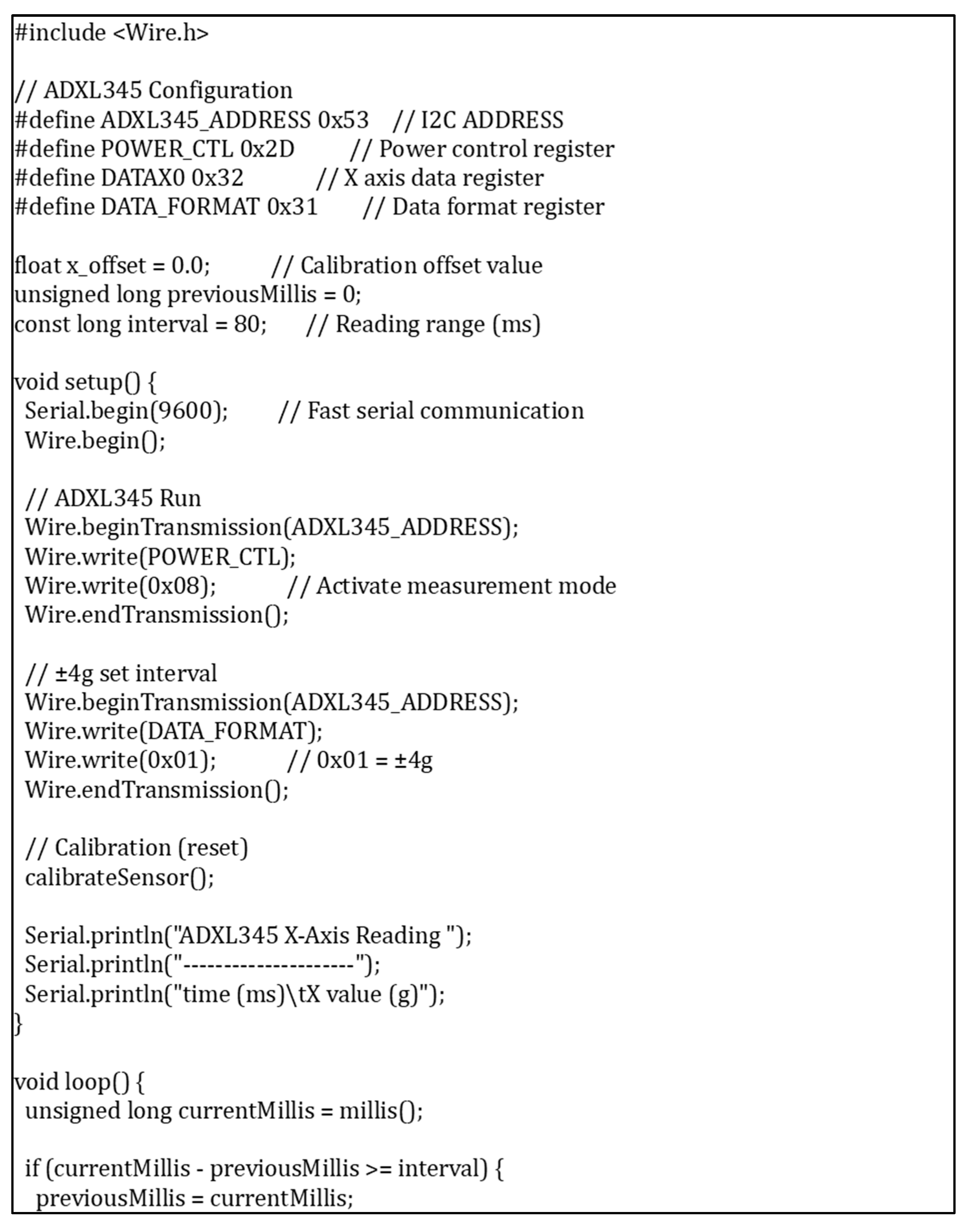 | Measurement Resolution | 13-bit (ADXL345 sensor) | Digital data generation on each axis | |