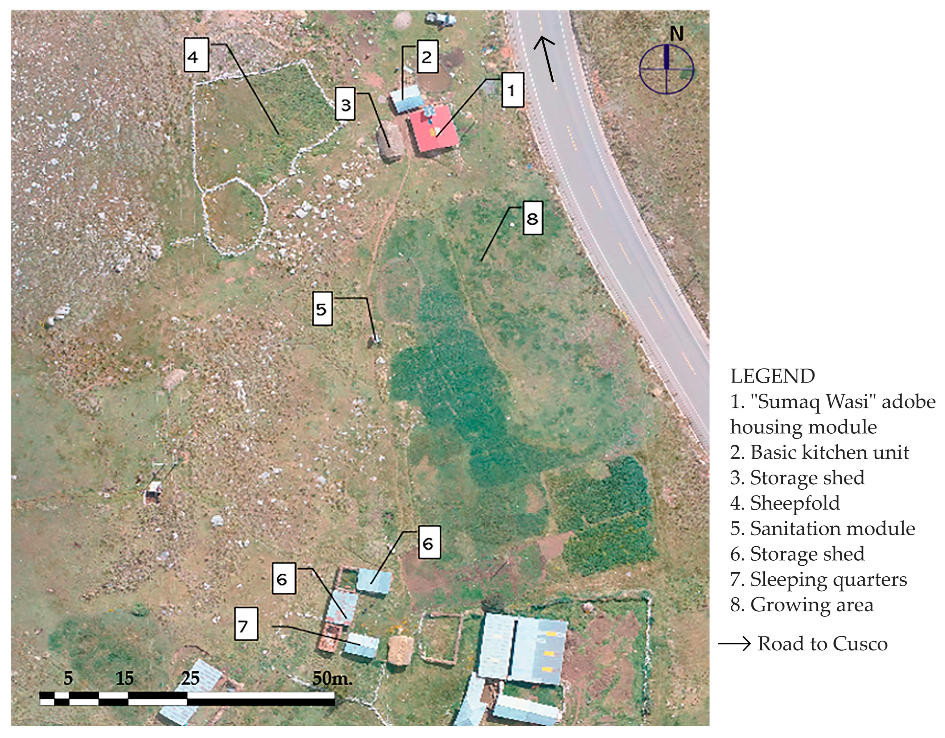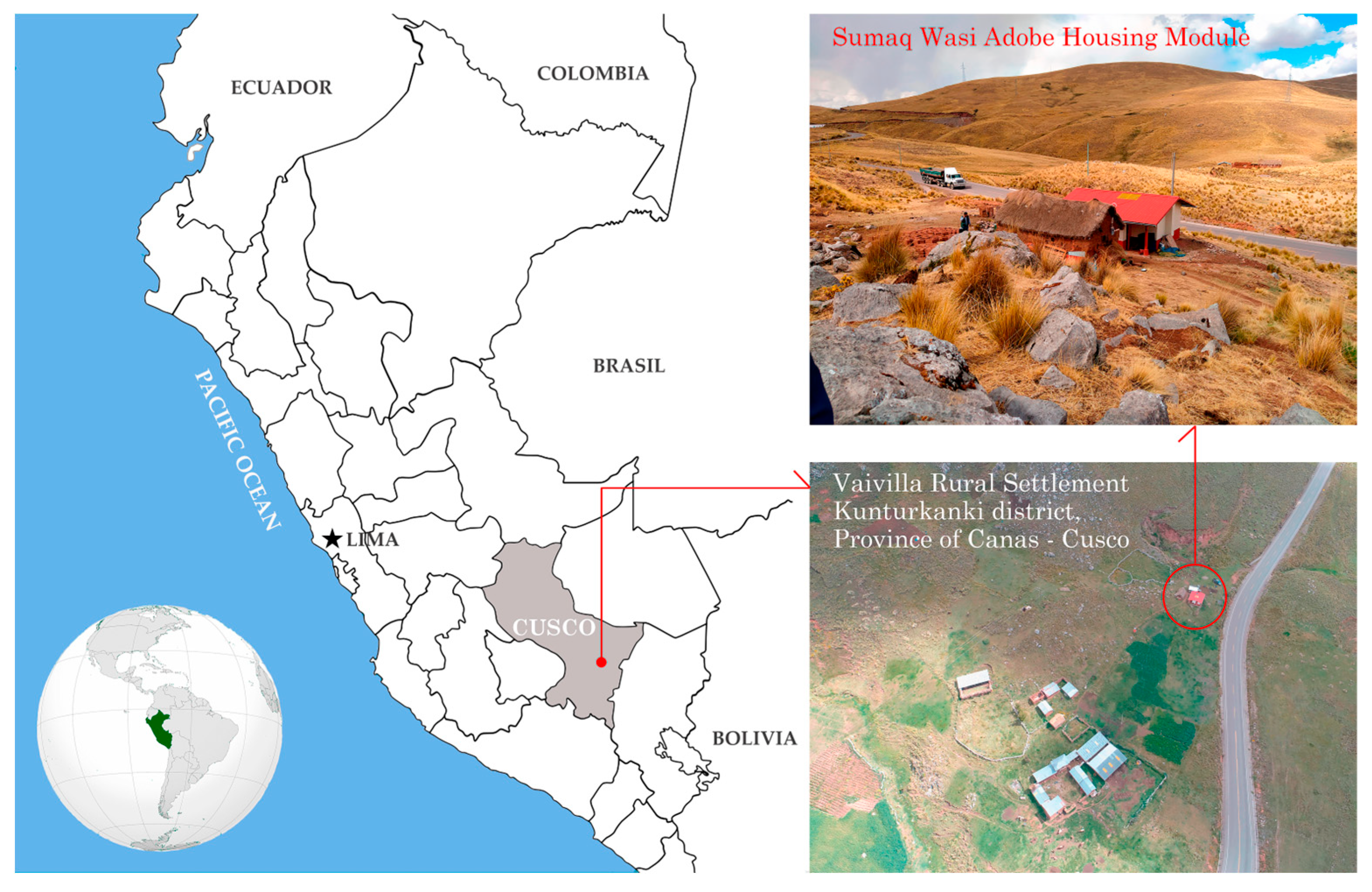 - Programa Nacional de Vivienda Rural. Sumaq Wasi. Ministerio de Vivienda, Construcción y Saneamiento. Available online: https://sites.google.com/vivienda.gob.pe/sumaqwasi/proyectos-de-mejoramiento-de-vivienda-rural?authuser=0 (accessed on 14 November 2023).