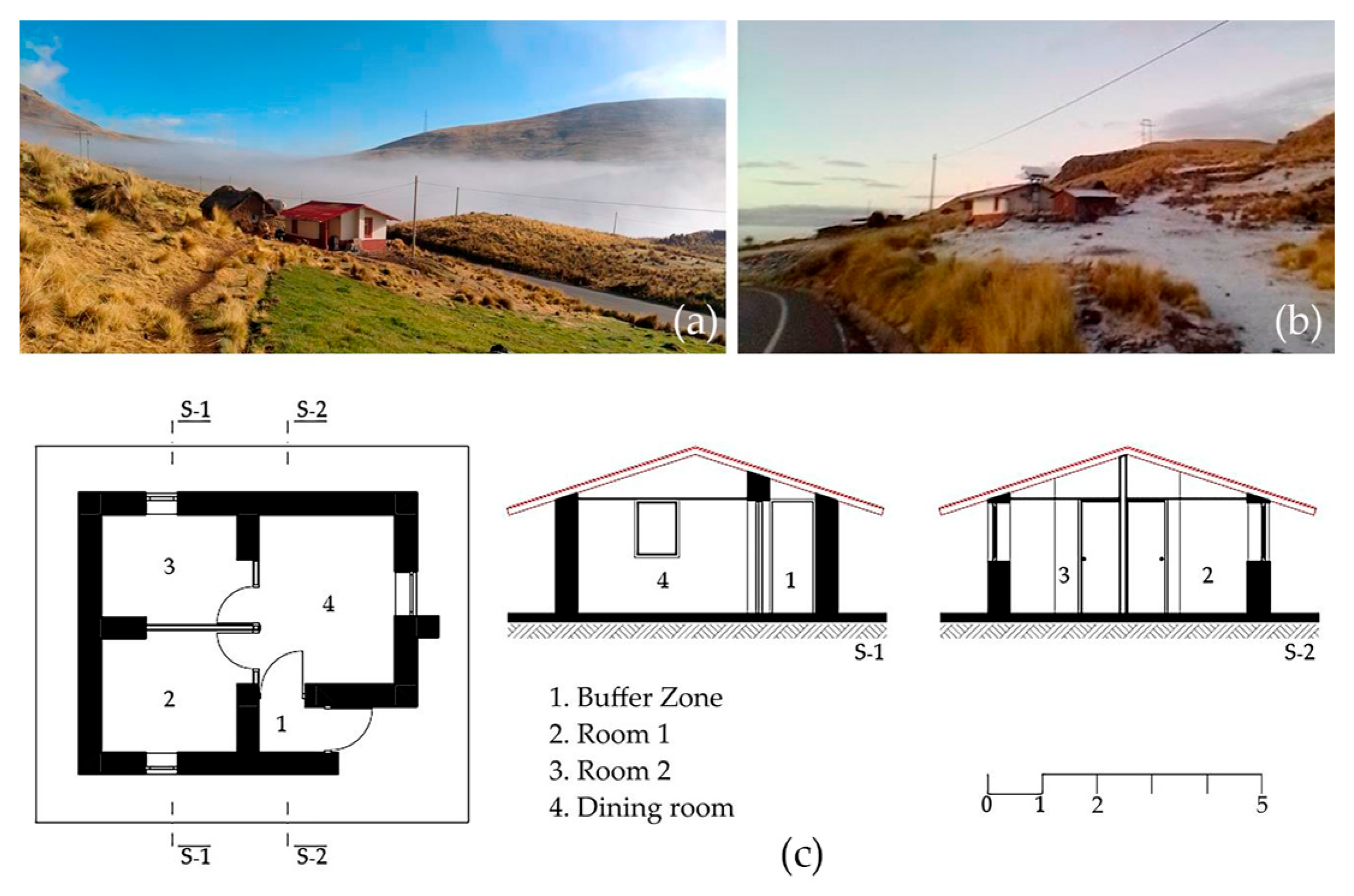 - Mejia-Solis, E.; Arias, J.; Palm, B. Simple solutions for improving thermal comfort in huts in the highlands of Peru. Heliyon 2023, 9, e19709. [Google Scholar] [CrossRef] [PubMed]