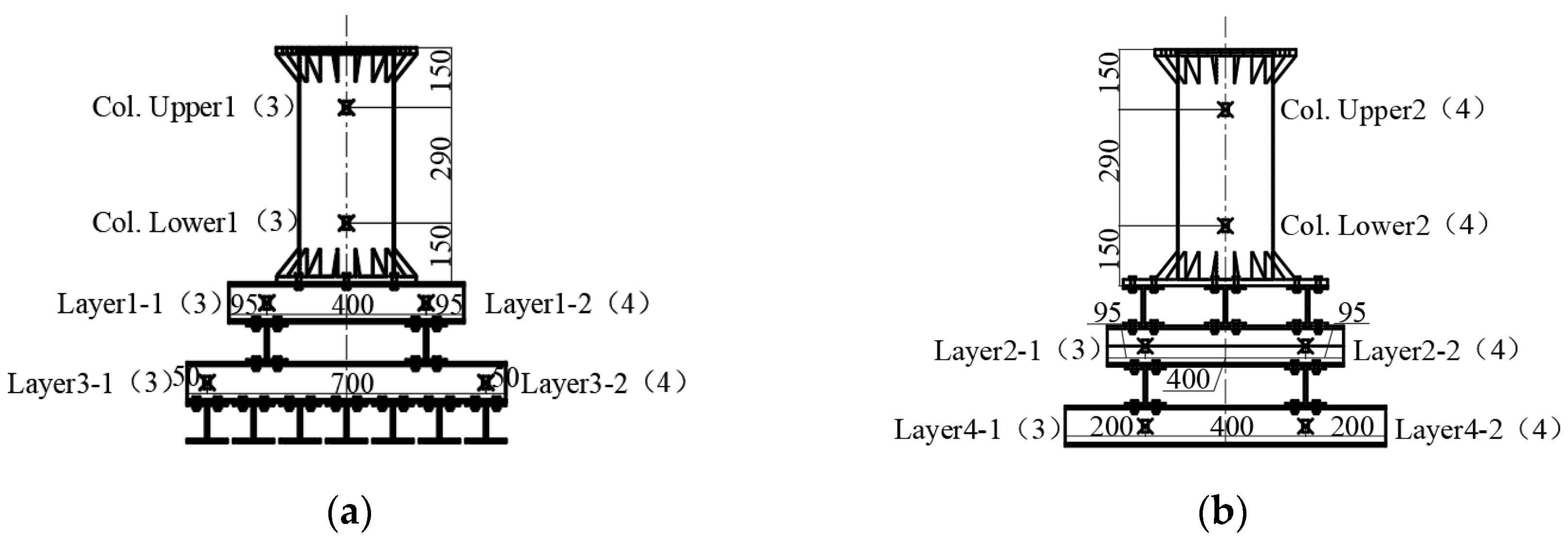 Initial Eccentricity—Originating from inevitable minor imperfections in construction and installation. Although the foundation is macroscopically symmetrical, the arrangement of members that are not perfectly axisymmetric leads to a slight deviation between the actual structural stiffness center and the geometric center. We candidly acknowledge that during the complex process of field assembly, despite numerous measures taken to ensure accuracy, the final positioning of the foundation, the degree of compaction of the backfill soil, and minor variations in the bolt tightening sequence and preload force between the I-beams and connection plates at various levels inevitably introduce initial installation eccentricity.