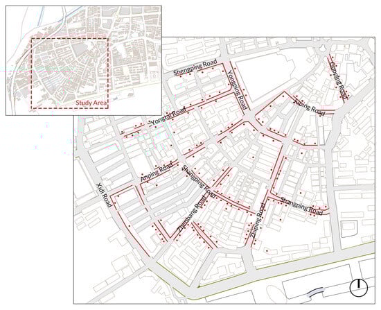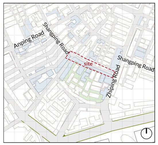 This study selects the intersection zone of Shangping Road and Zhiping Road as the experimental site. The arcade facades in this area show significant deterioration due to long-term neglect and require urgent renewal. Multiple architectural styles coexist here, including Baroque decorations, Nanyang-style colonnades, and modern renovation elements. Original decorative patterns are partially damaged or missing. This typical phenomenon of stylistic hybridity in historic districts provides ideal conditions to test the generative model’s adaptability in complex real-world environments. The design scope is illustrated in the figure below (Figure 19).