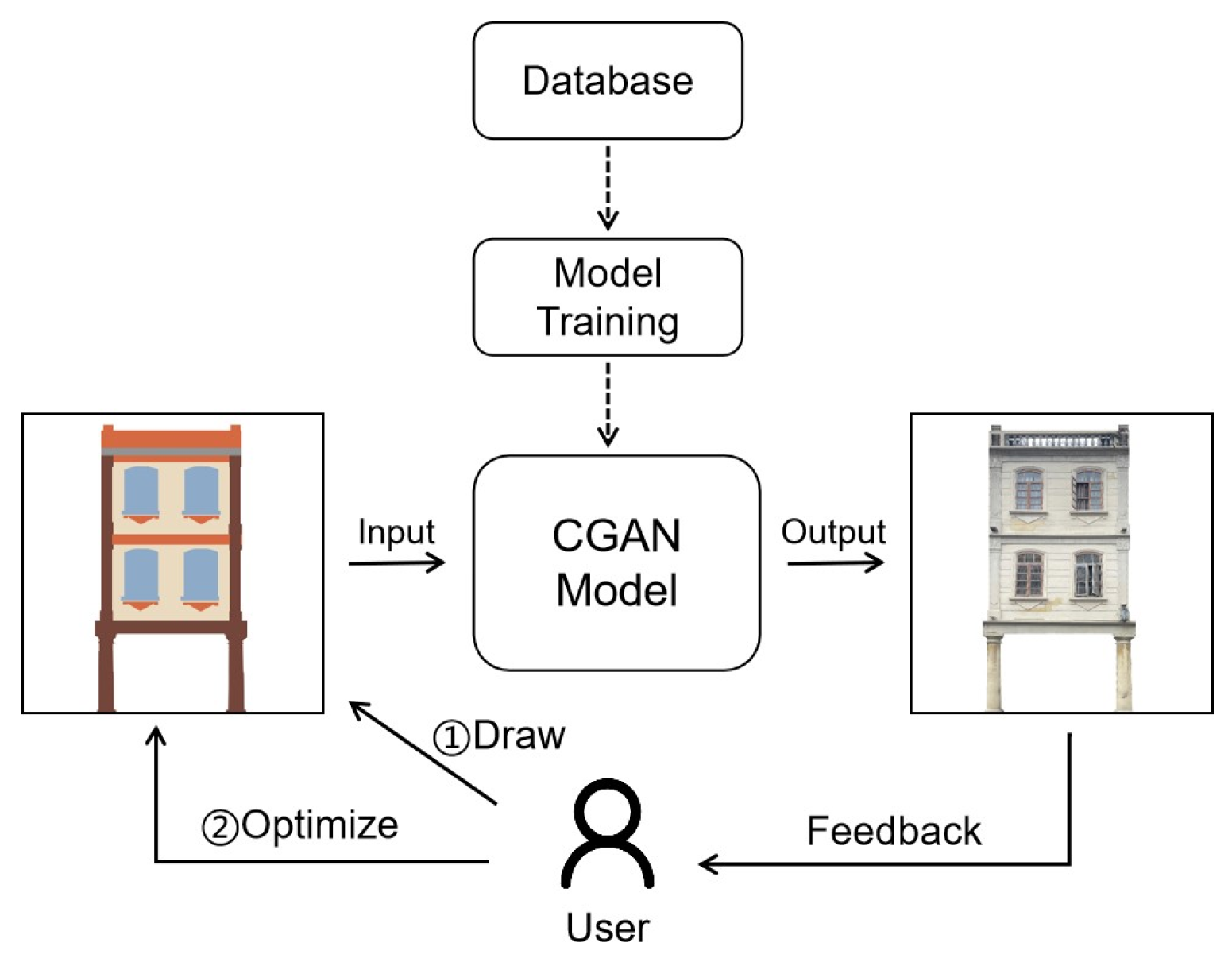 - The model will also support the renovation of buildings in Xiaogongyuan by generating facade plans that align with its cultural, environmental, and renewal needs. Trained on collected facade images and data, it automatically learns features such as style, color, and materials to provide design solutions that balance historical continuity with contemporary adaptability.