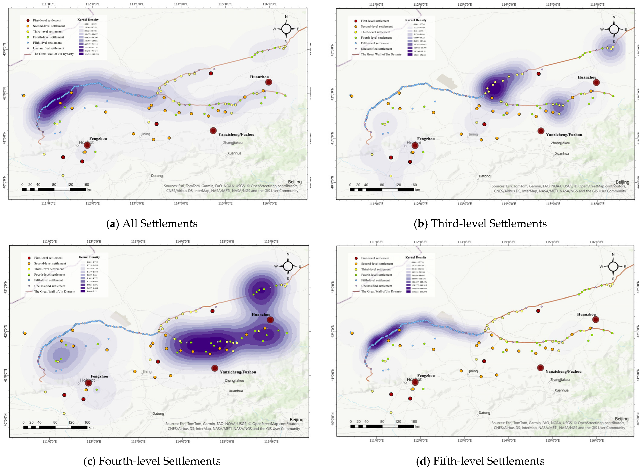 4.3. Defensive Strategies Reflected in the Distribution Patterns of Settlements at Different Level