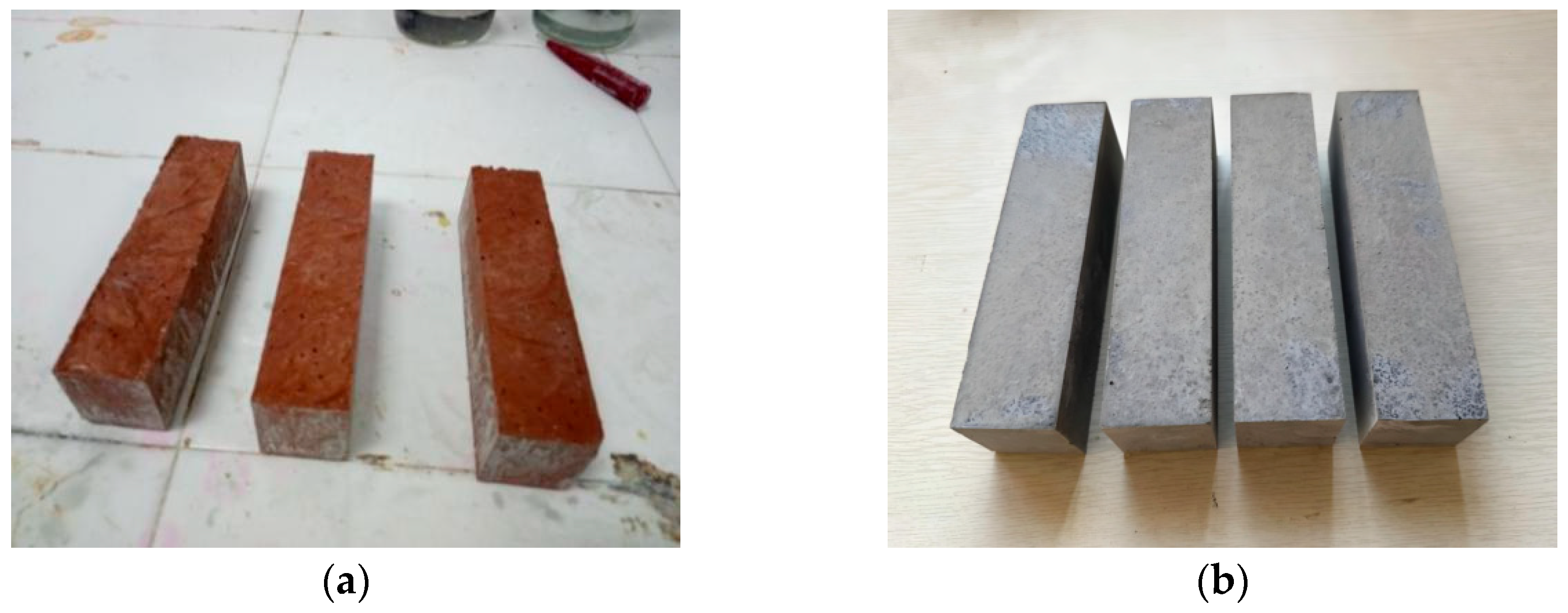 - Schackow, A.; Stringari, D.; Senff, L.; Correia, S.; Segadães, A. Influence of fired clay brick waste additions on the durability of mortars. Cem. Concr. Compos. 2015, 62, 82–89. [Google Scholar] [CrossRef]