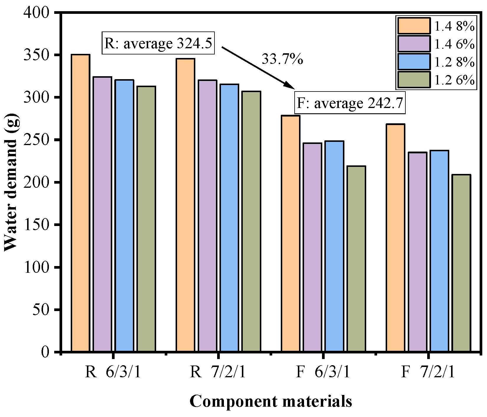 - Under identical conditions, WRCBP-based pastes exhibited about 33.7% higher water demand compared with FA-based pastes due to the coarser surface texture and higher porosity of WRCBP.