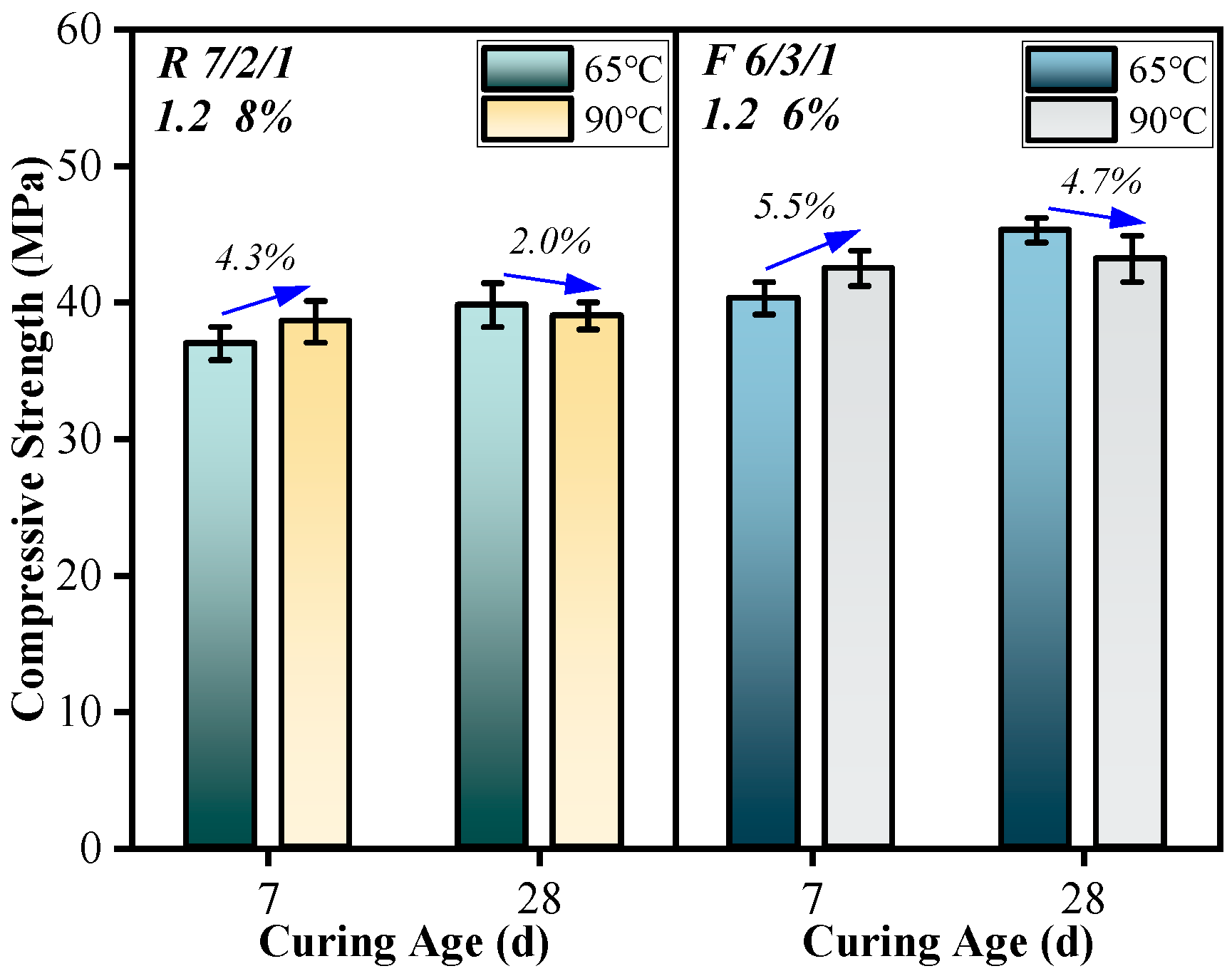3.2. Compressive Strength of the Samples