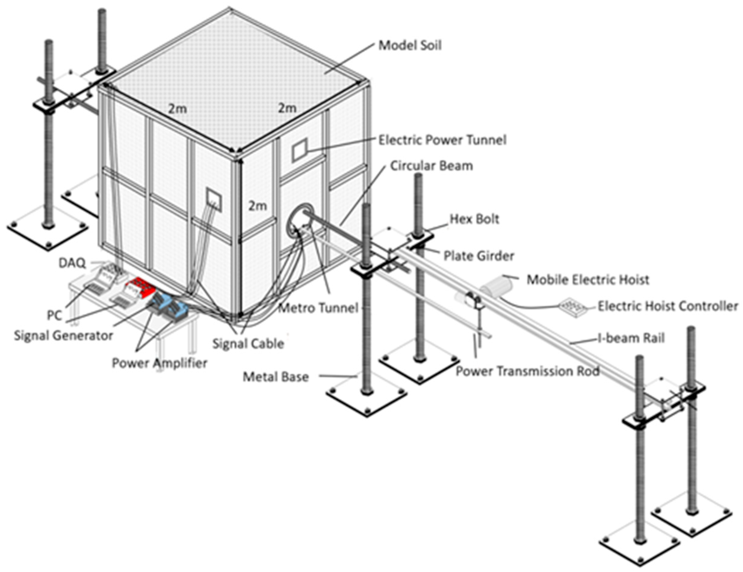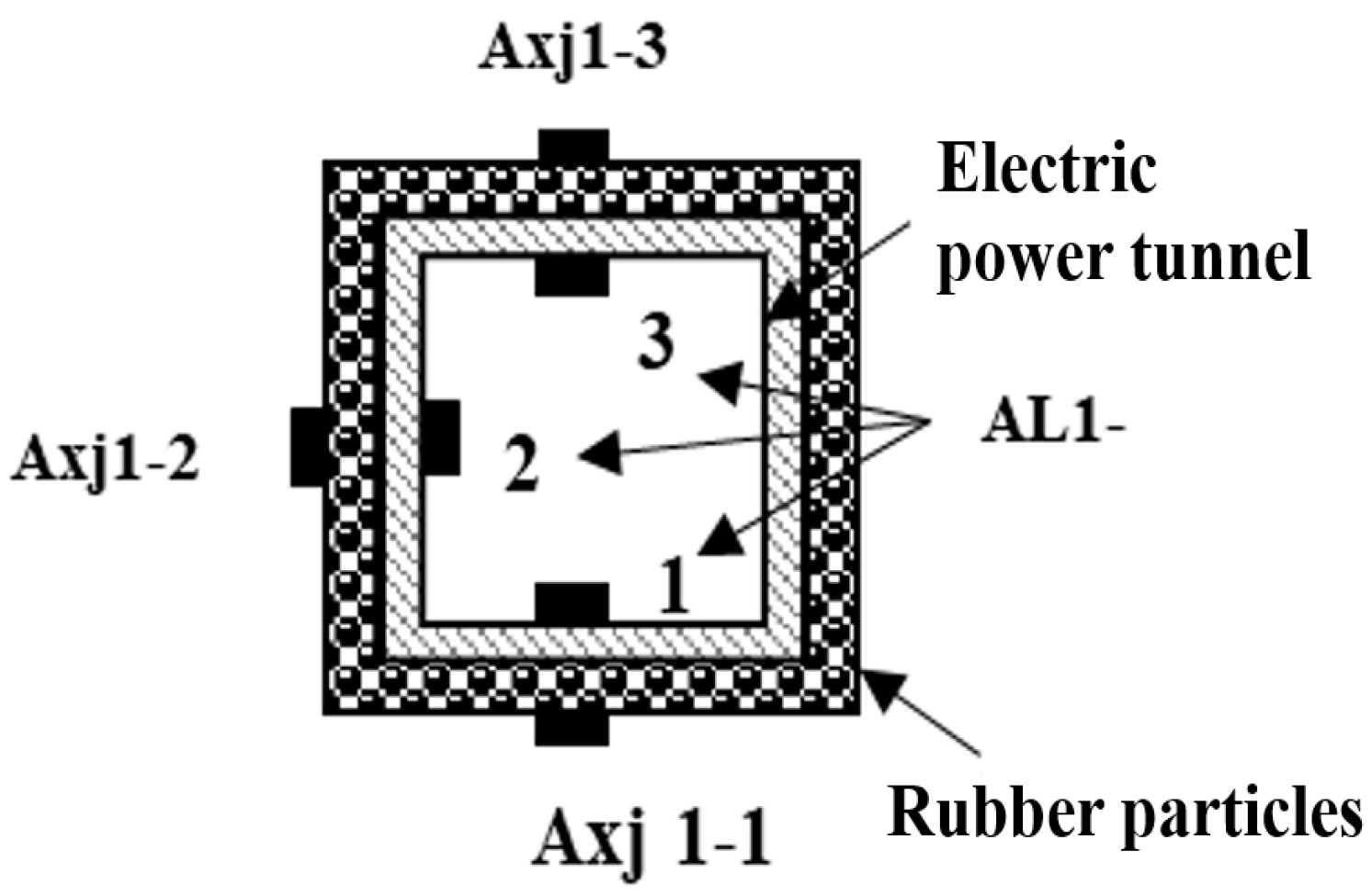 | 3 | Power tunnel 0.8 m directly above metro tunnelRubber particle isolation and vibration reduction | 0° | Sinusoidal Load | 75 | 0.35 |