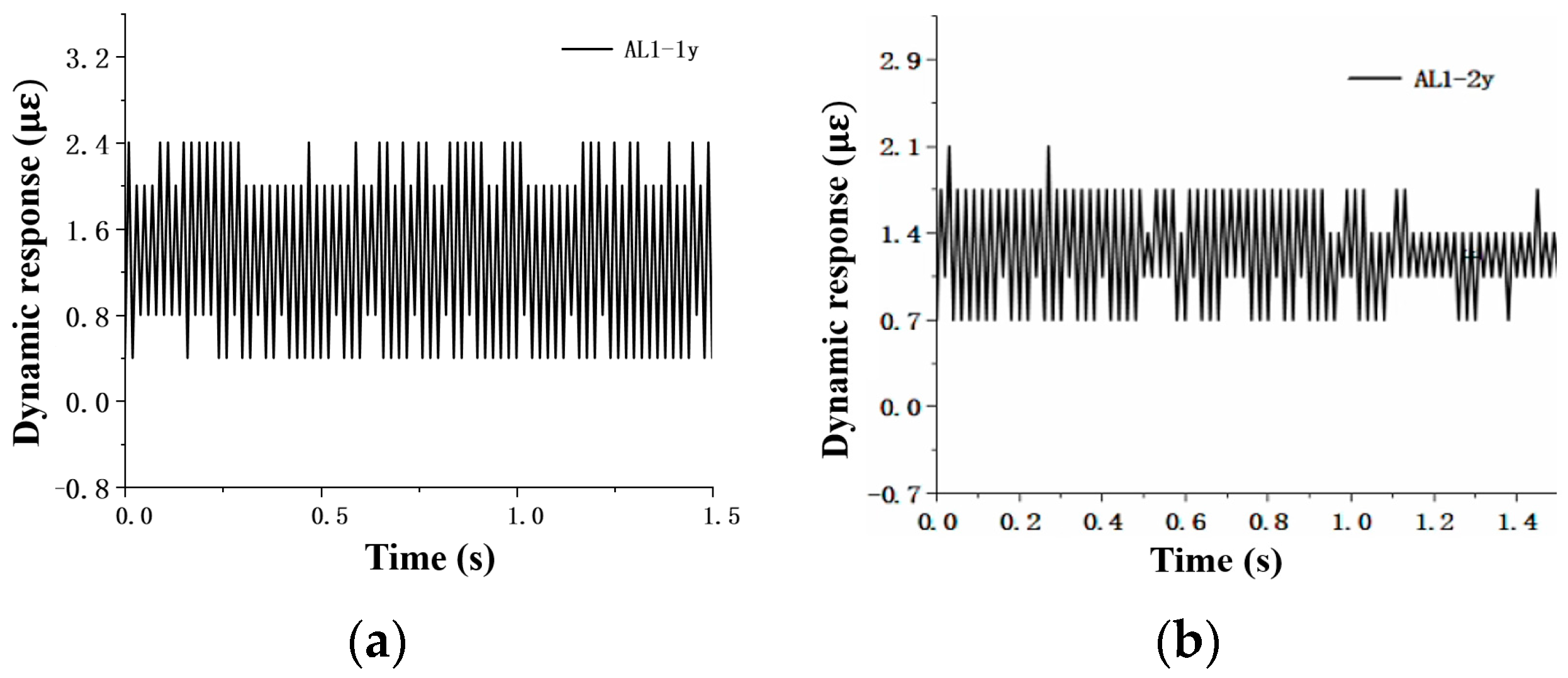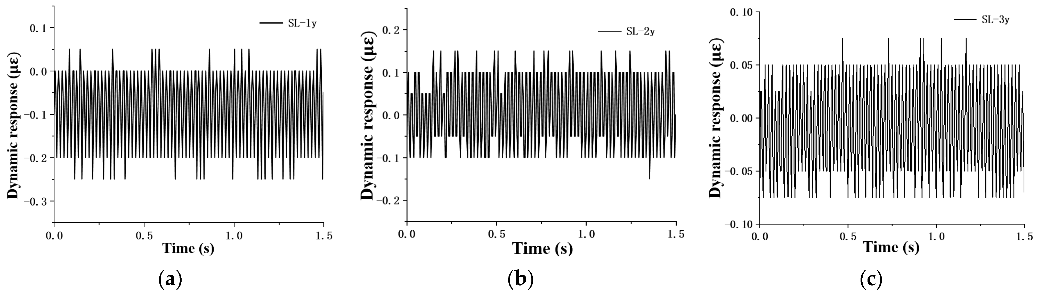 3.3. Comparison of Power Tunnel Structural Responses Under Different Vibration Isolation Measures