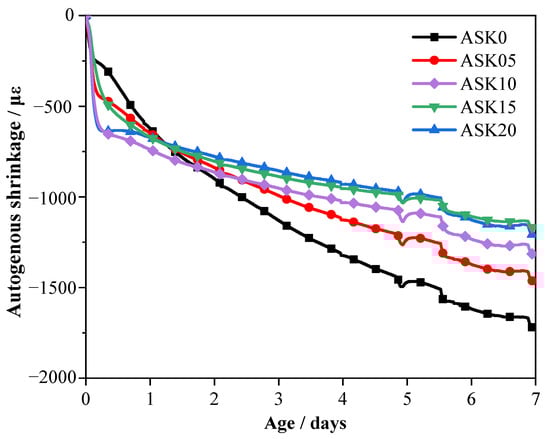 Autogenous shrinkage of AABS samples over 7 d.