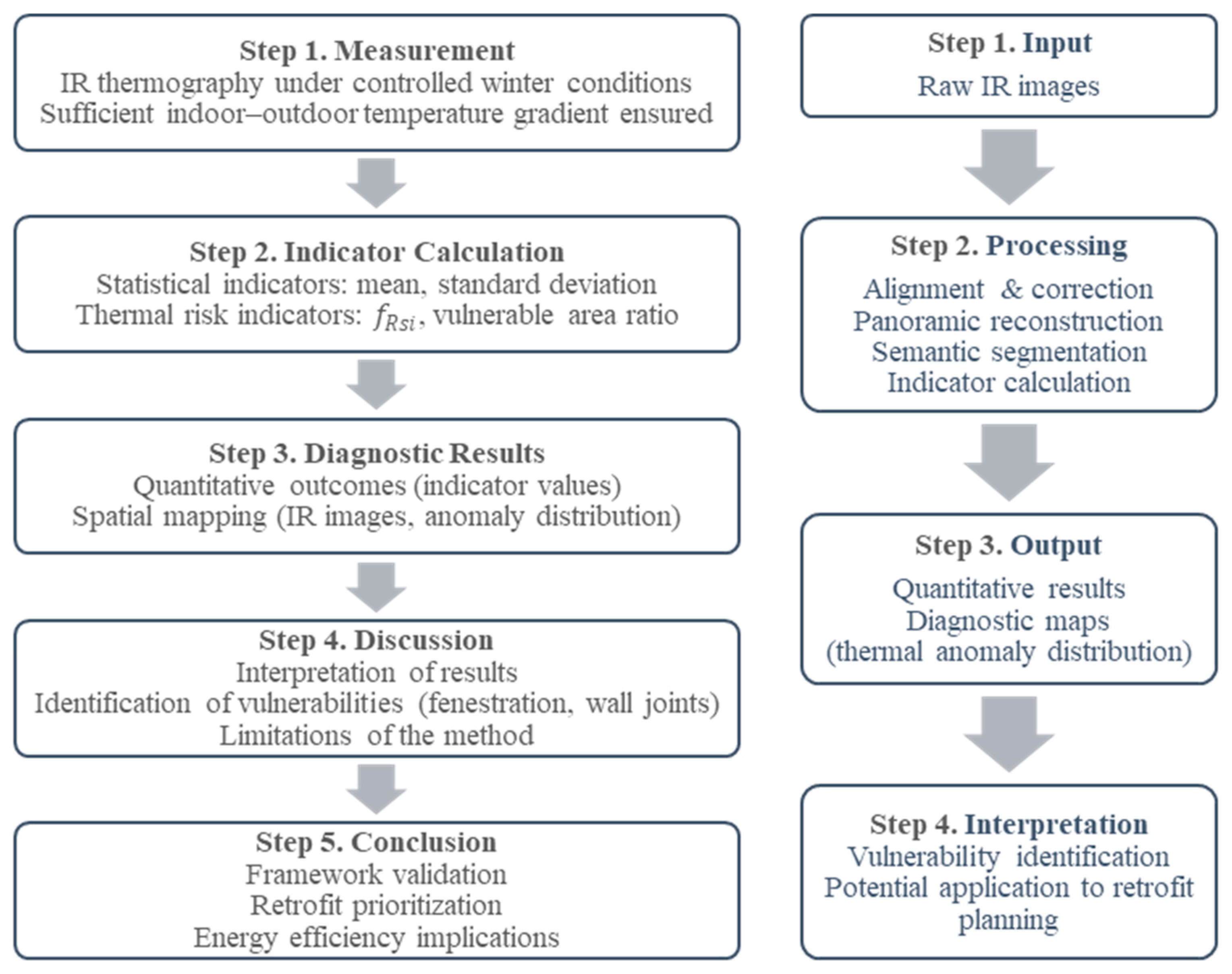 Despite these developments, existing studies remain fragmented: most rely on single-frame IR images, lack quantitative consistency, or fail to integrate advanced image processing techniques. No unified framework has yet been established that systematically combines panoramic IR reconstruction, semantic segmentation, and quantitative indicator analysis into a reproducible diagnostic pipeline.