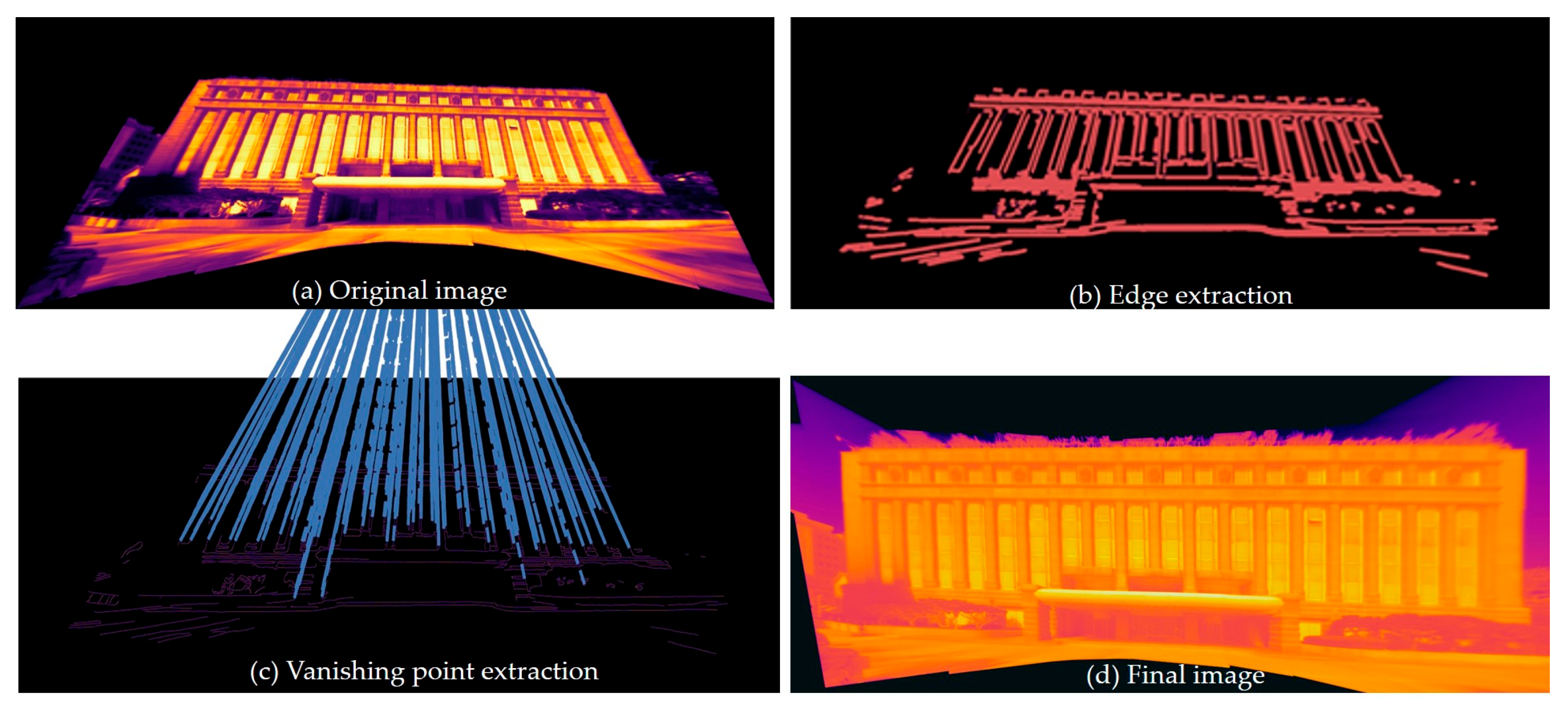 - Gertsvolf, D.; Horvat, M.; Khademi, A.; Aslam, D.; Berardi, U. Image Processing for Future Machine Learning Algorithm Applications on Infrared Thermography of Building Envelope Systems. In Proceedings of the International Conference on Building Energy and Environment (COBEE 2022), Montreal, QC, Canada, 25–29 July 2023. [Google Scholar]