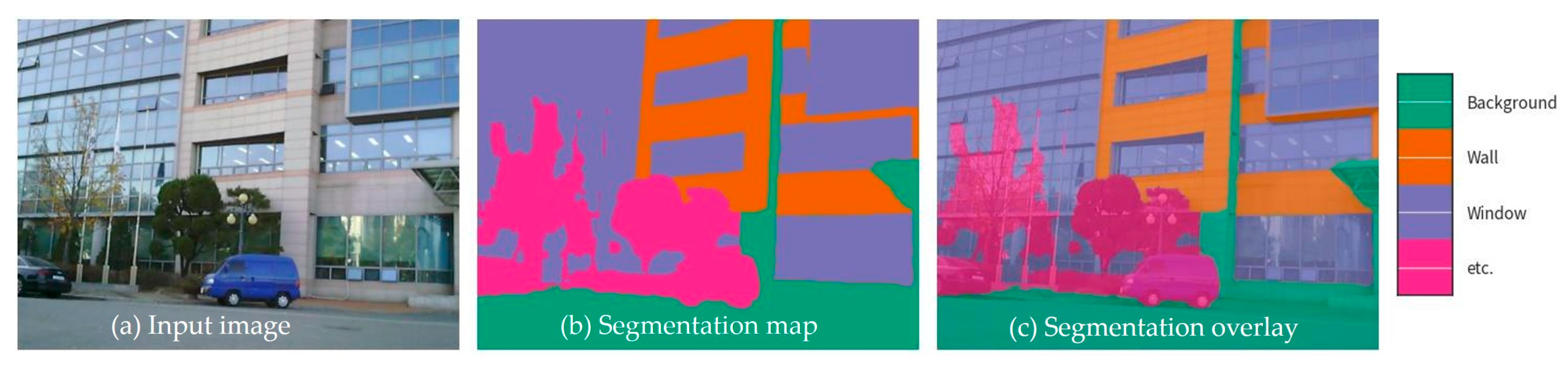 - Jung, H.; Park, H.; Jung, H.S.; Lee, K. Enhancing Building Facade Image Segmentation via Object-Wise Processing and Cascade U-Net. Comput. Mater. Contin. 2024, 81, 2261–2279. [Google Scholar] [CrossRef]
