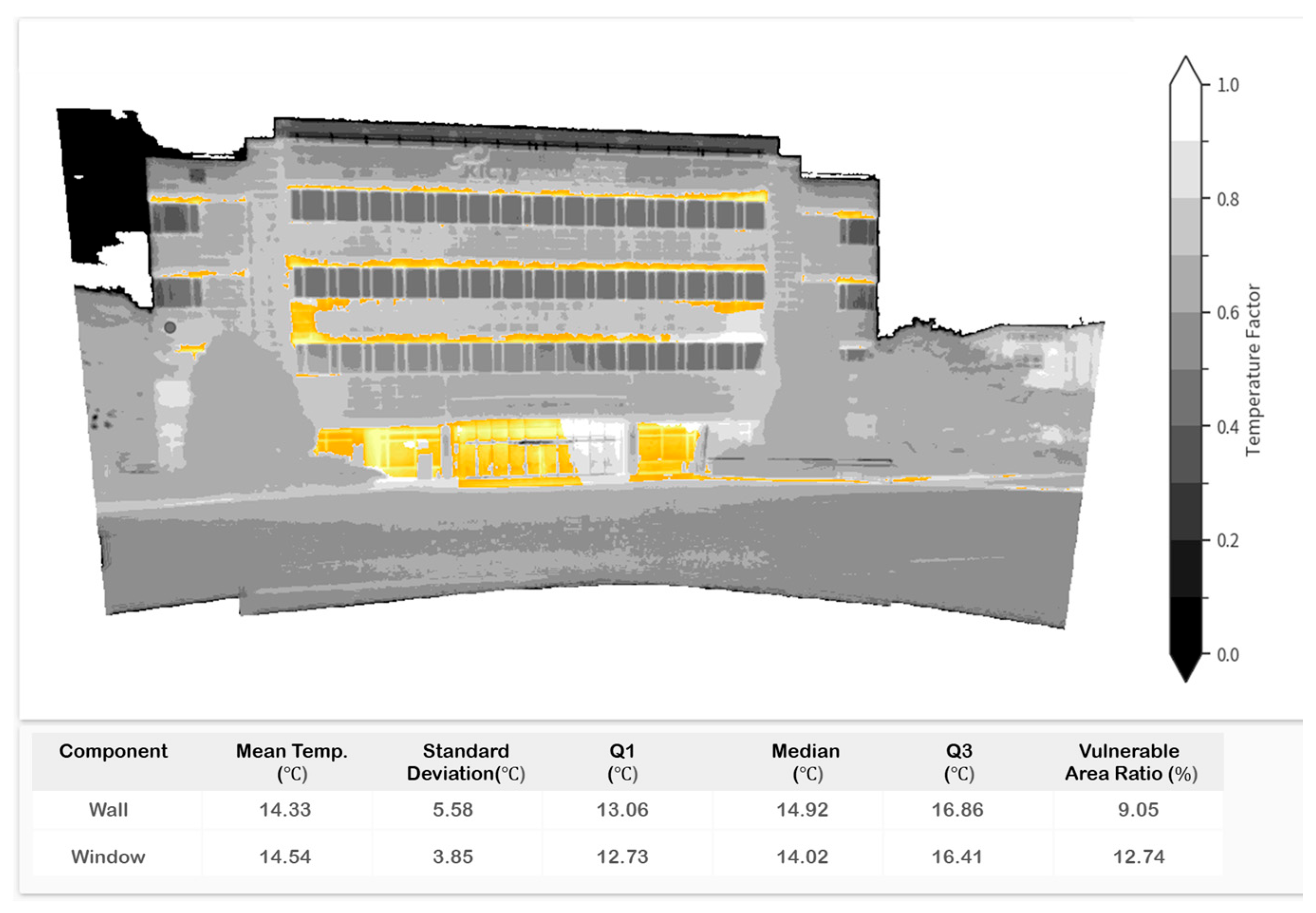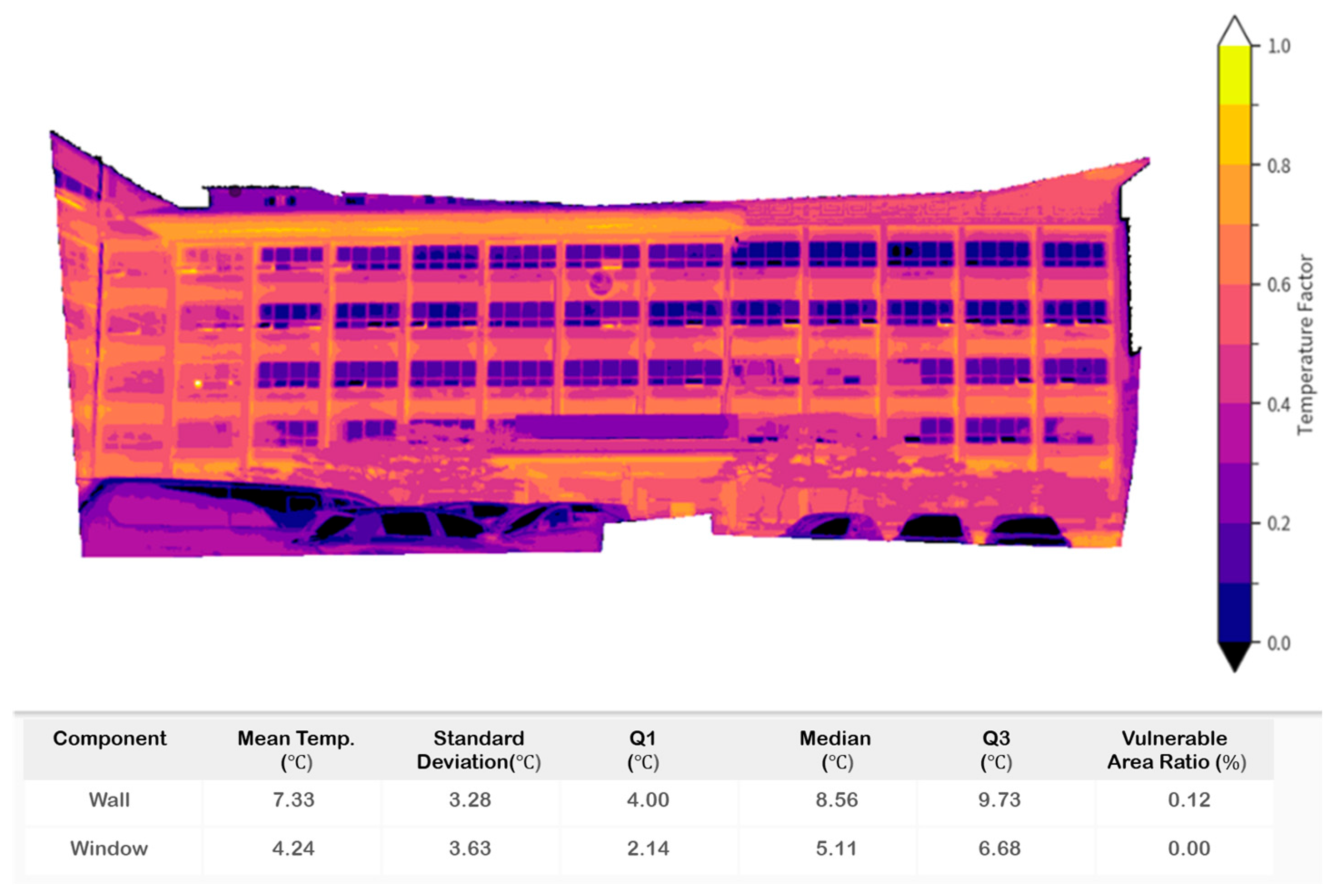 | Component | Mean Temperature (°C) | Standard Deviation (°C) | Q1 | Median | Q3 | Vulnerable Area Ratio |
