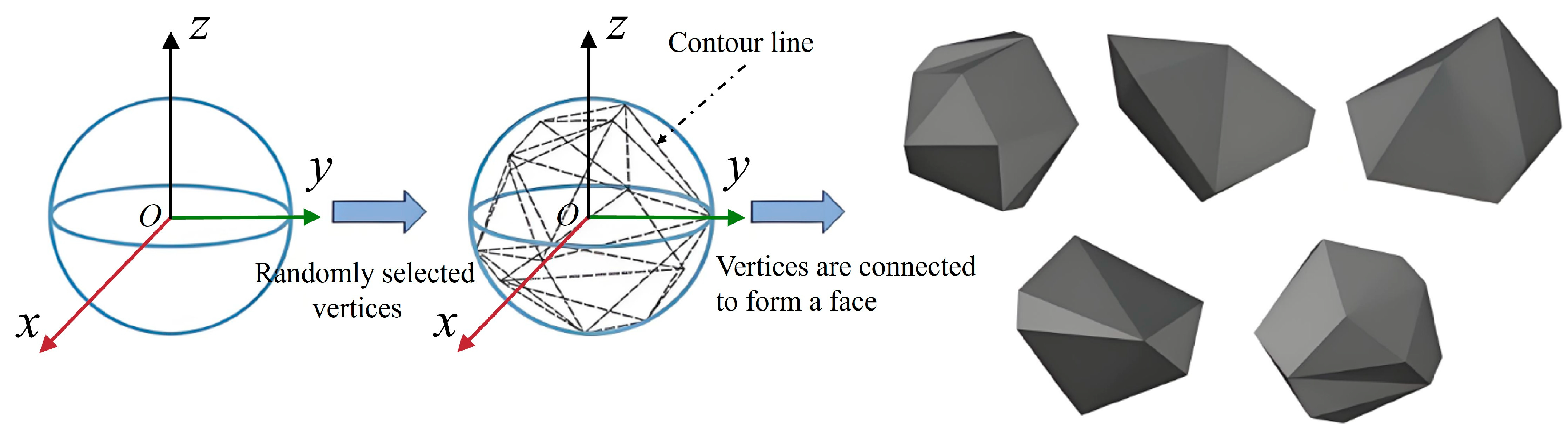 - Wang, B.; Wang, H.; Zhang, Z.; Zhou, M. Mesoscopic modeling method of concrete aggregates with arbitrary shapes based on mesh generation. Chin. J. Comput. Mech. 2017, 34, 591–596. [Google Scholar]